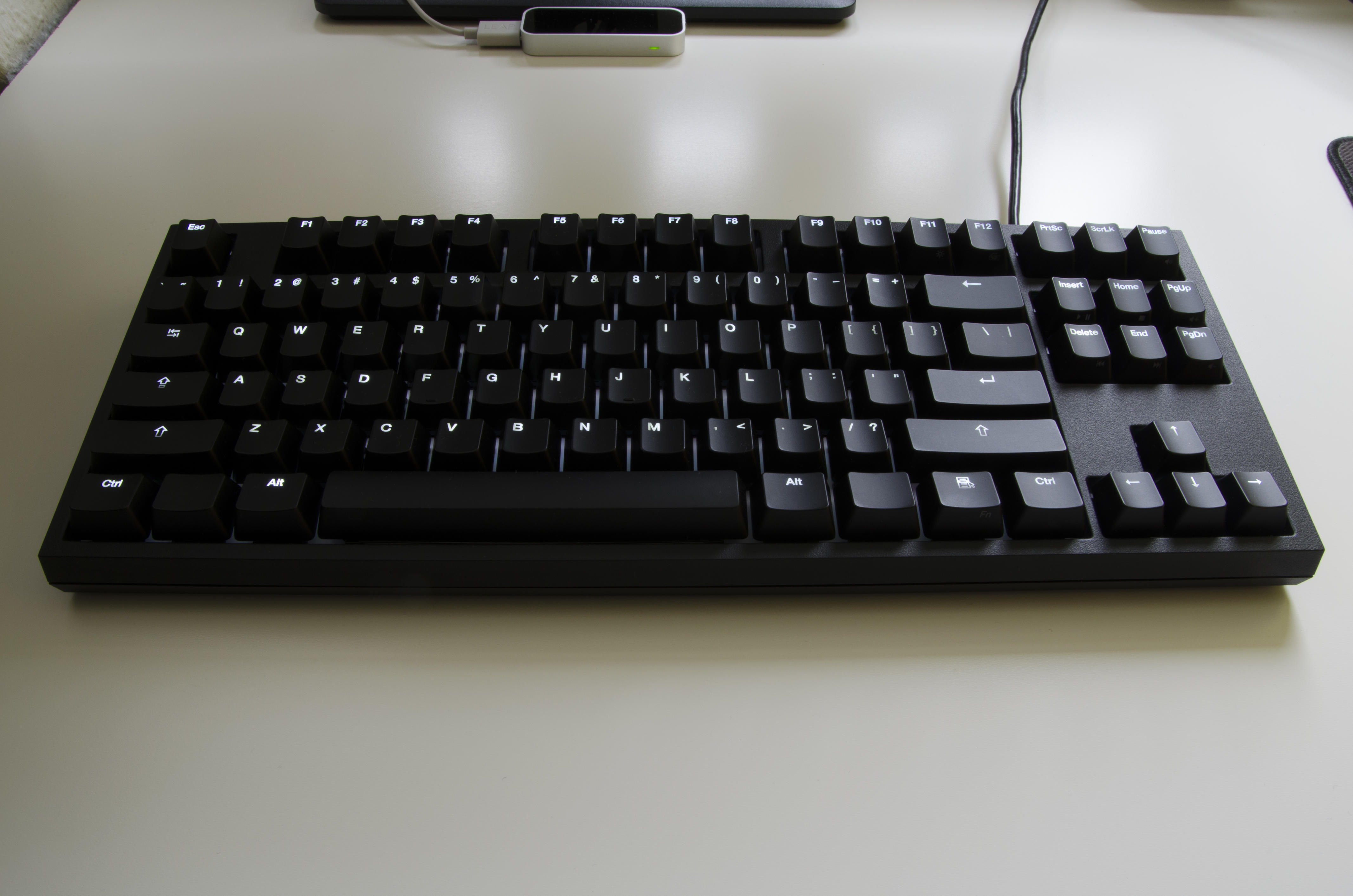Hier eine weiß beleuchtete "QF Rapid-i", gefällt mir sehr gut. Das Gehäuse scheint etwas kantiger zu sein als bei der normalen Rapid, ähnlich wie beim Code-Keyboard? Mal abwarten, ob die auch hier erscheint in ISO-De.