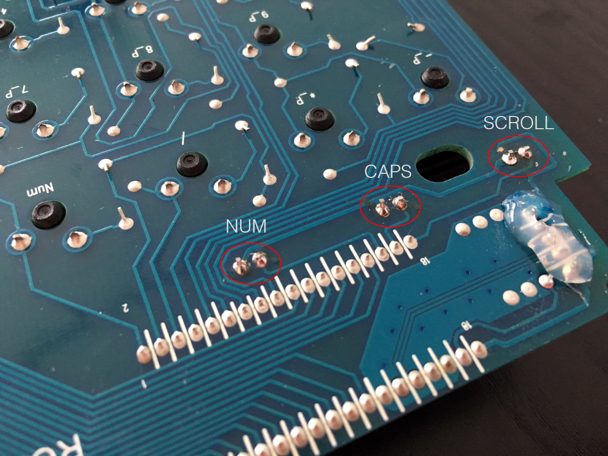 Zum auslöten das ganze Teil auf die Keycaps legen, und folgende Lötpunkte lösen: