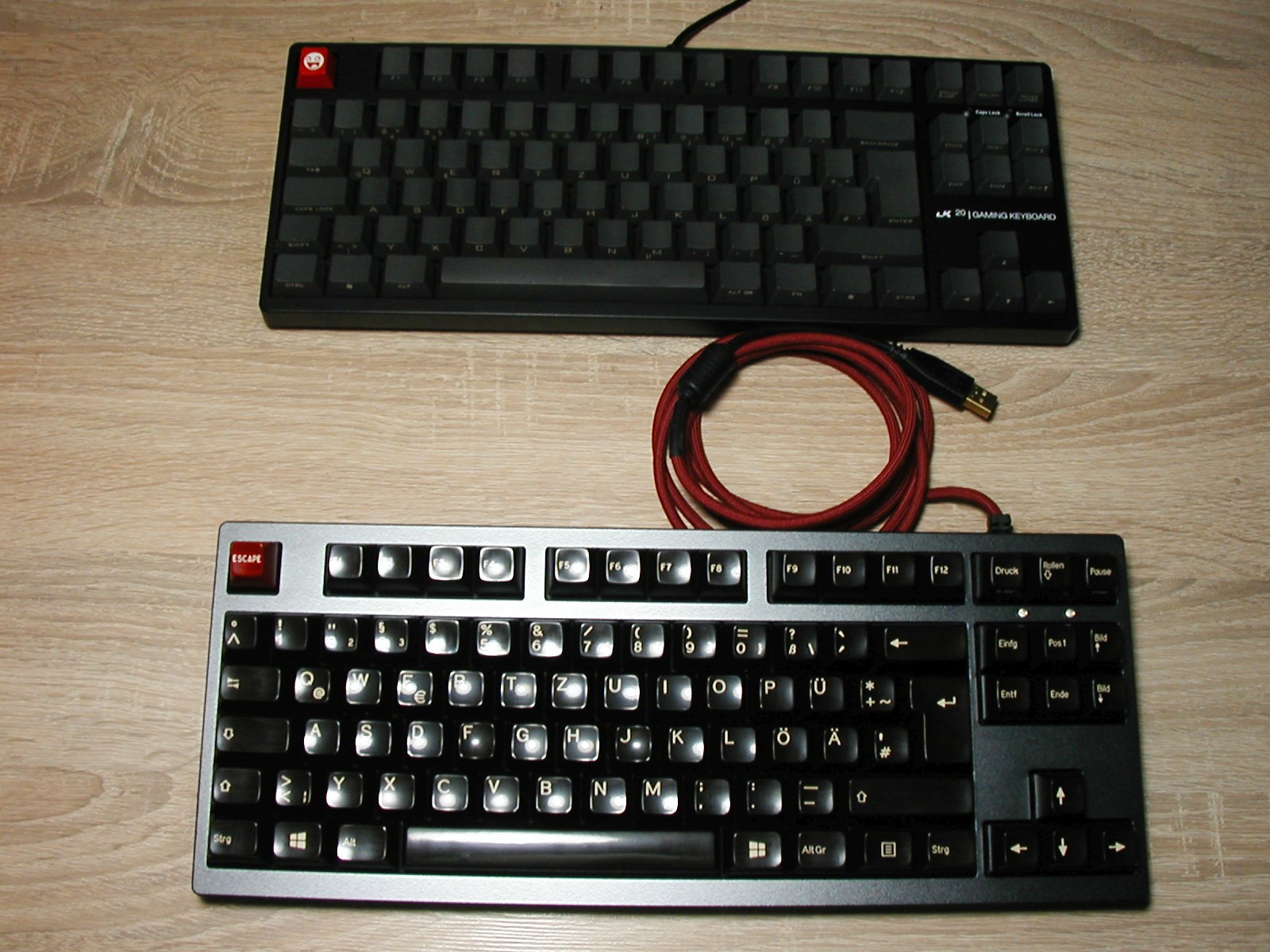 Hier mal ein altes Foto, auf dem oben Vortex-PBTs sind und unten die polierten Filco-SAs
