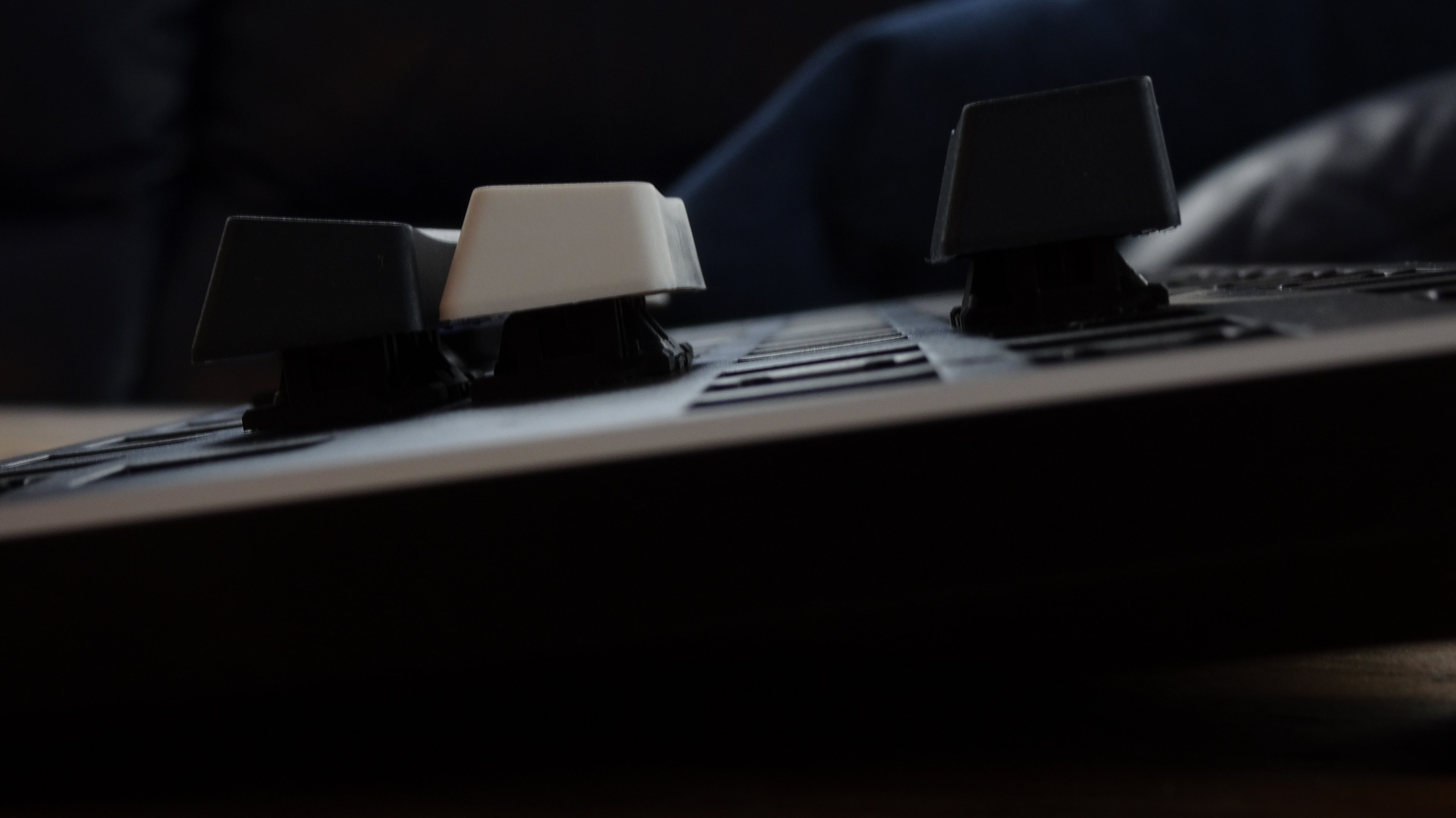 Auch dann war ich aber nicht überzeugt von der Tastatur. Möglicherweise hat mich die Ducky One 2 mit Blacks akustisch verwöhnt, subjektiv liegt allerdings die Gesamtlautstärke hoch, selbst meine Shine 6 mit MX-Blue kommt mir nicht lauter vor als die GMMK. Jetzt könnte man meinen, die Unterschiede in Sachen Lautstärke der einzelnen MX wäre mir völlig fremd - nein, jedoch nehme ich das Geräusch auch "vom Schaltertyp bereinigt" als zu hell und zu laut wahr.