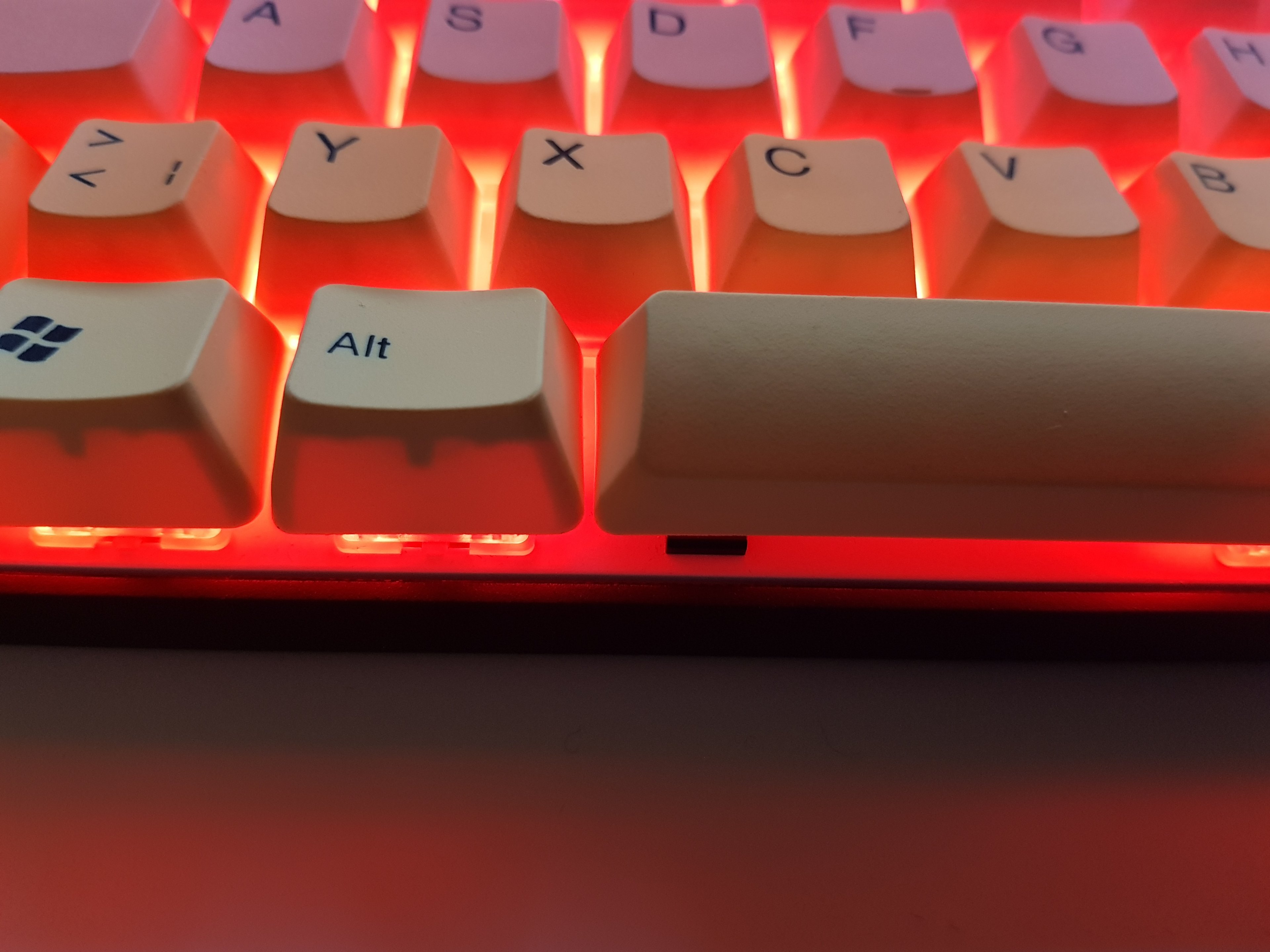 Ich vermute, dass gute teil-durchsichtige Caps immer im DoubleShot-Verfahren gemacht sein müssen, ja. Ob PBT oder ABS ist Geschmackssache, letzteres wird halt schnell glänzend. Wie oben erwähnt: Tai-Hao ist auch gut, enjoyPBT ebenfalls.