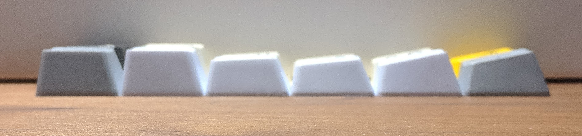 Technisch ist es wahrscheinlich auch nicht ganz einfach das mit Double-Shot zu kombinieren. SA Pulse R3 hat ein paar Novelties mit durchsichtiger Beschriftung, aber da sind auf der Unterseite noch diese Reihen aus dem undurchsichtigen Plastik drüber, so das die Ausleuchtung aussieht als wäre eine halb offene Jalousie dazwischen...