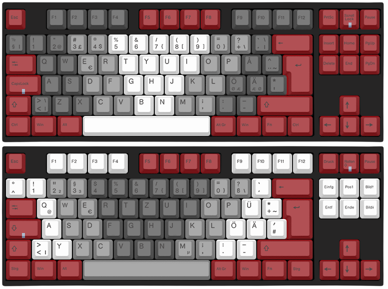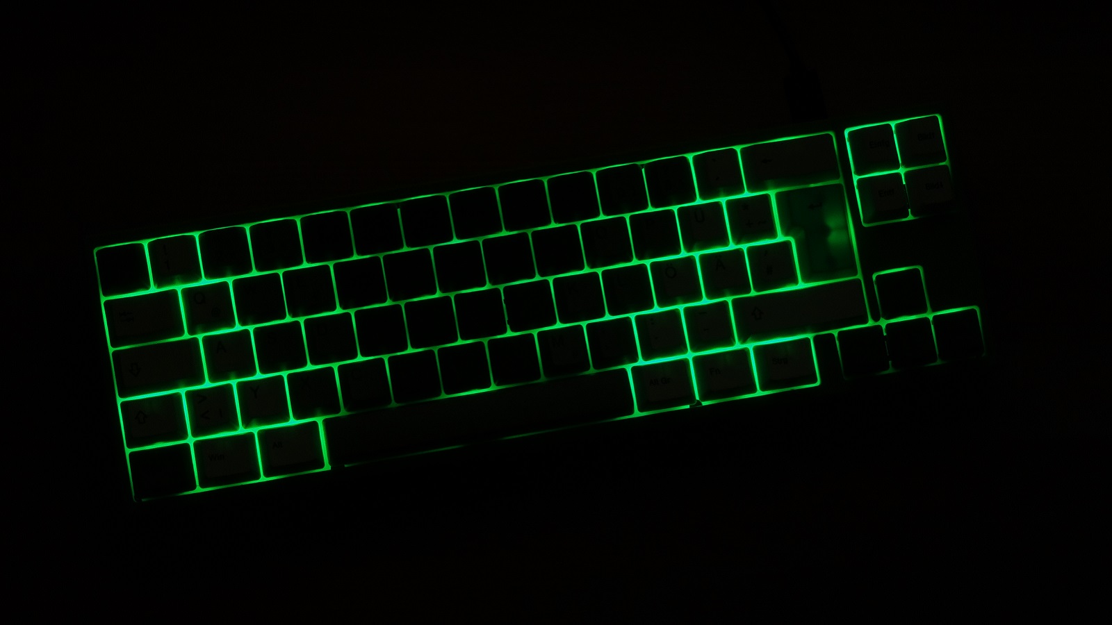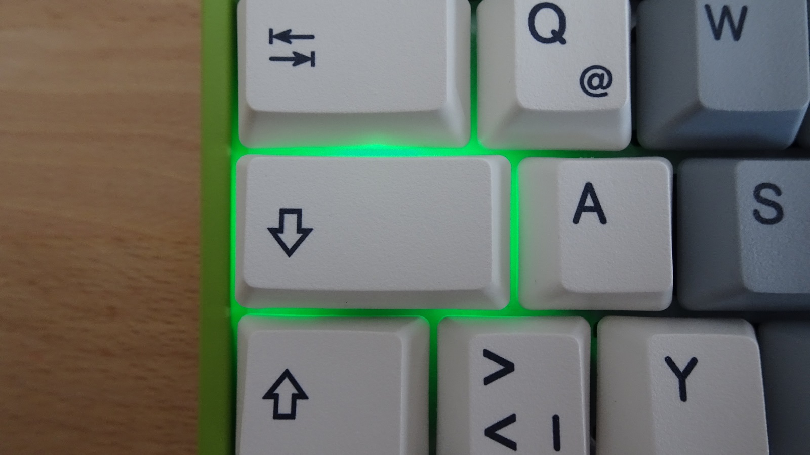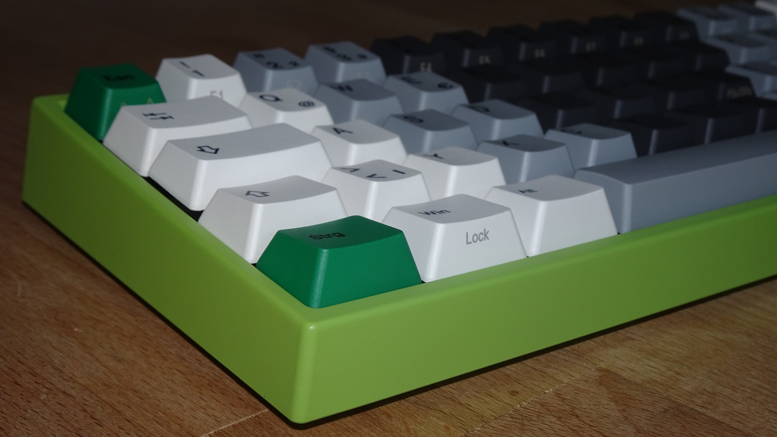 Ich habe mir unter jede Taste eine grüne LED bestellt, bis jetzt leuchtet nur Capslock, mit der Software beschäftige ich mich heute Abend oder Morgen. Die Caps sind schön flach, aber lichtundurchlässig, die weiße Plate war daher vermutlich keine schlechte Idee.