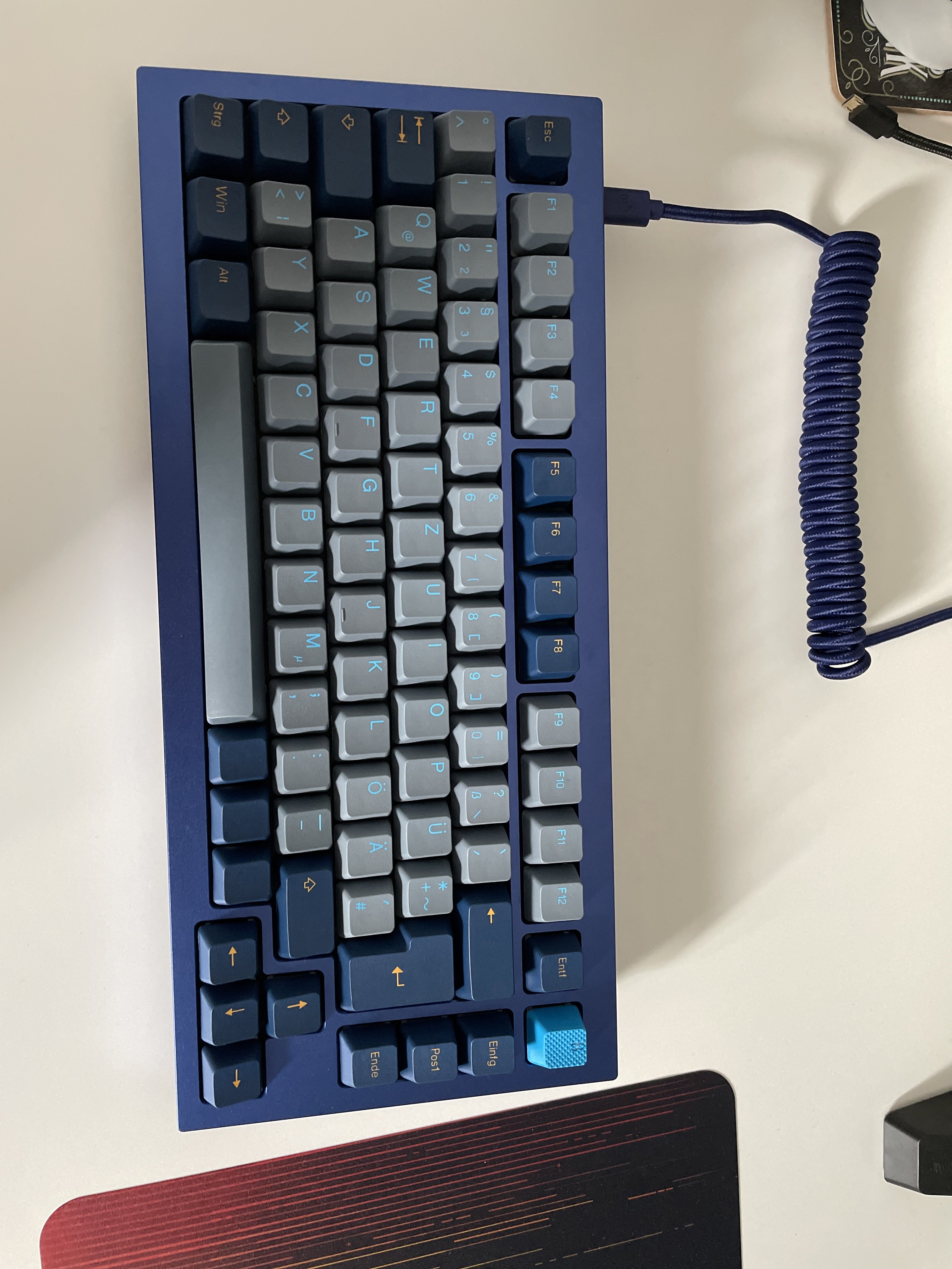 glasvitrine, schrank, schreibtisch, wo halt platz ist^^ ich tausche nach lust und laune durch. hab mich mittlerweile an das 65% layout gewöhnt obwohl es mir eigentlich zu klein ist. sobald gmk hammerhead da ist, werd ich die auf ne TKL schnallen und die dann erstmal wieder nutzen.YomDom schrieb:Da hab ich ne Frage: was macht ihr mit den Boards ? Der Spaß ist ja jetzt nicht gerade günstig und dann ein Board für 300-500€+ im Regal stehen zu haben ? Oder nutzt ihr alles in einer Art Rotation ?