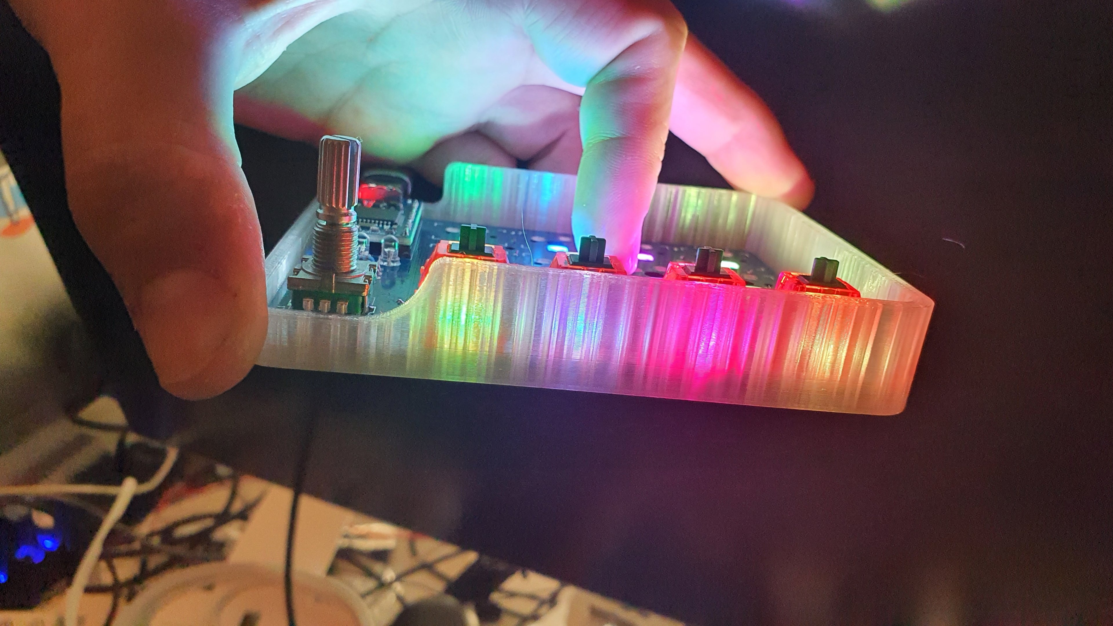 Der Gedanke war, dass ein Hotswap Board ja gewisse Toleranzen zulassen muss, wodurch der Switch Spiel hat und leicht umher rutschen kann. Durch das Gummipad hoffe ich das zu eliminieren, da Plastik auf Gummi weniger rutscht als auf einem nackten PCB.