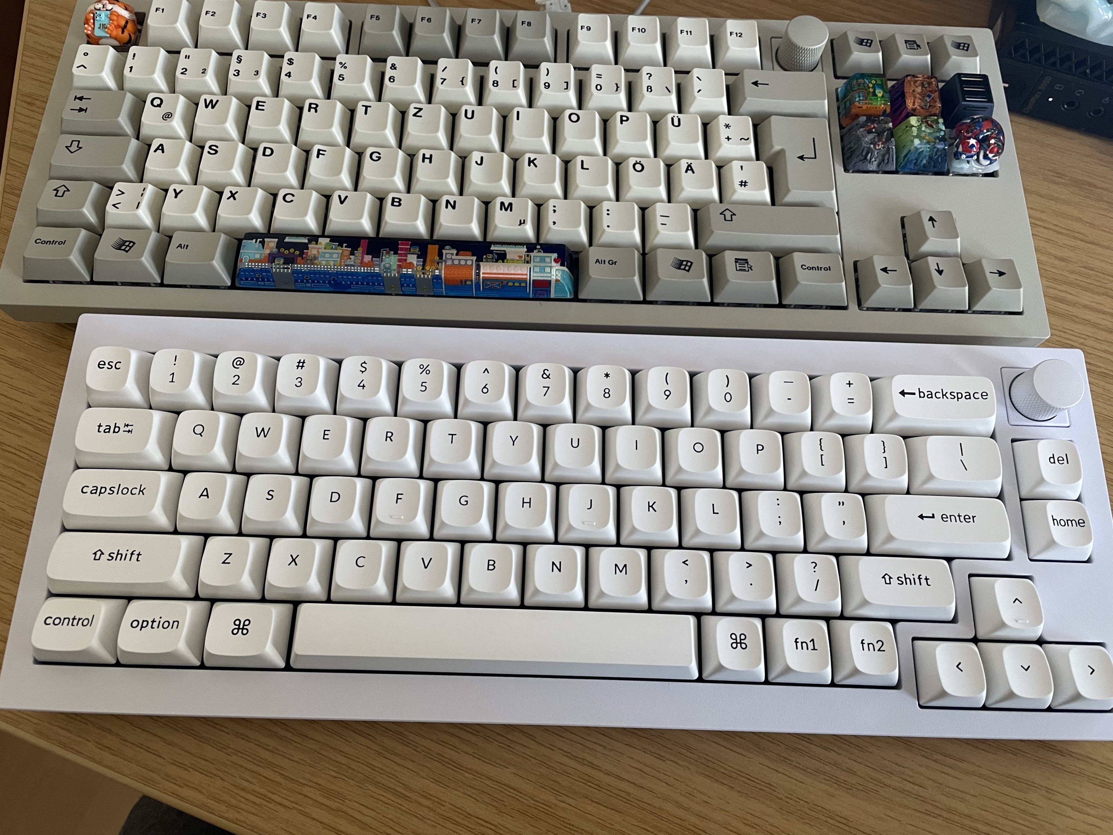 Das Geld hättest du dir meiner Meinung nach sparen können. Hab`s an einer Q1 verglichen und FR4 macht fast keinen Unterschied zu Stahl, und die "reagiert" ja eher noch mehr auf Änderungen, als die kleine Q2... Weder aktustisch, noch vom Feel. PC wäre dein Freund gewesen, denke ich ;-)Trimipramin schrieb:Plate ist ne FR4 verbaut. Jau, muss nicht unbedingt Thocky werden, schon okay.