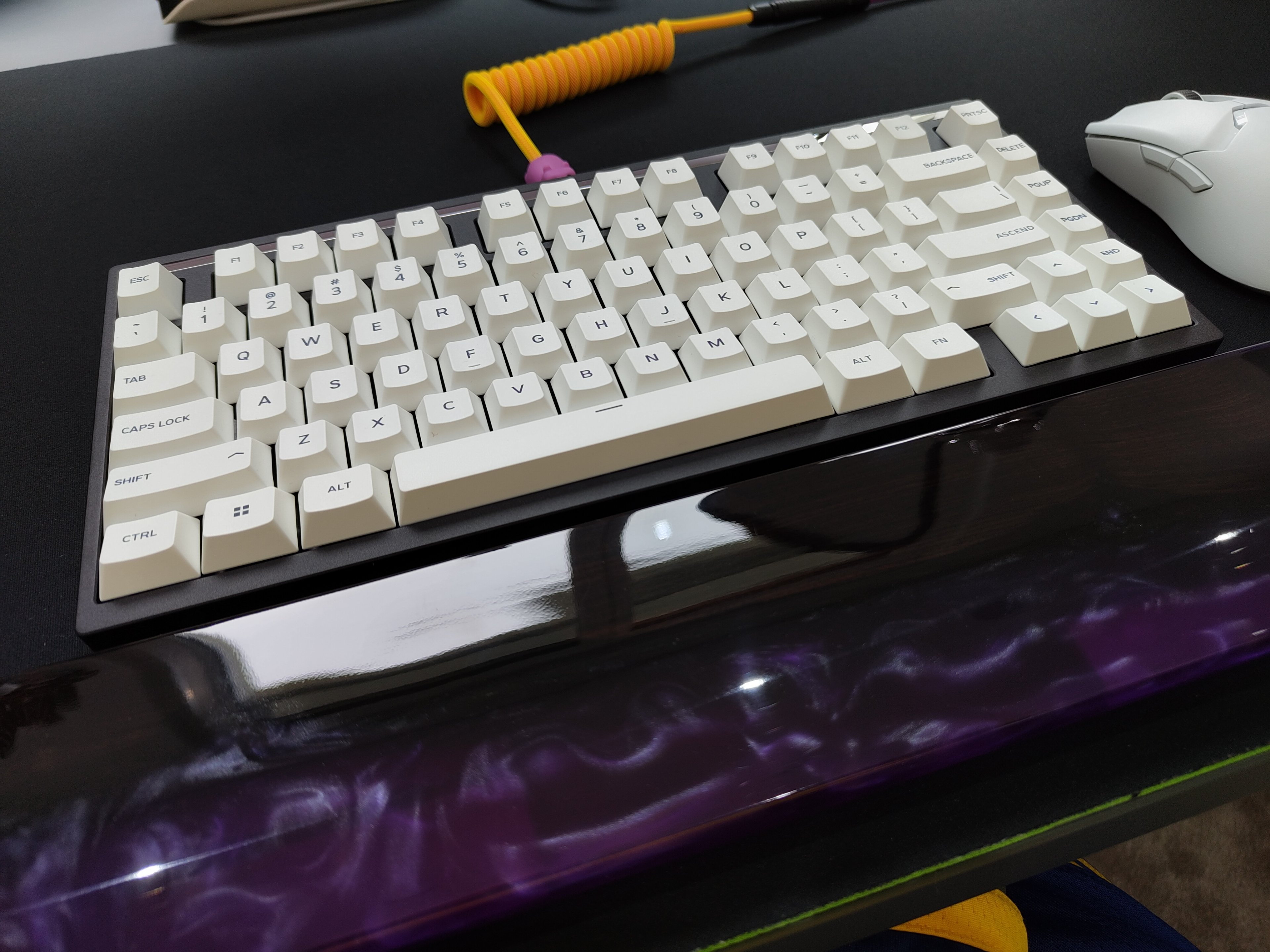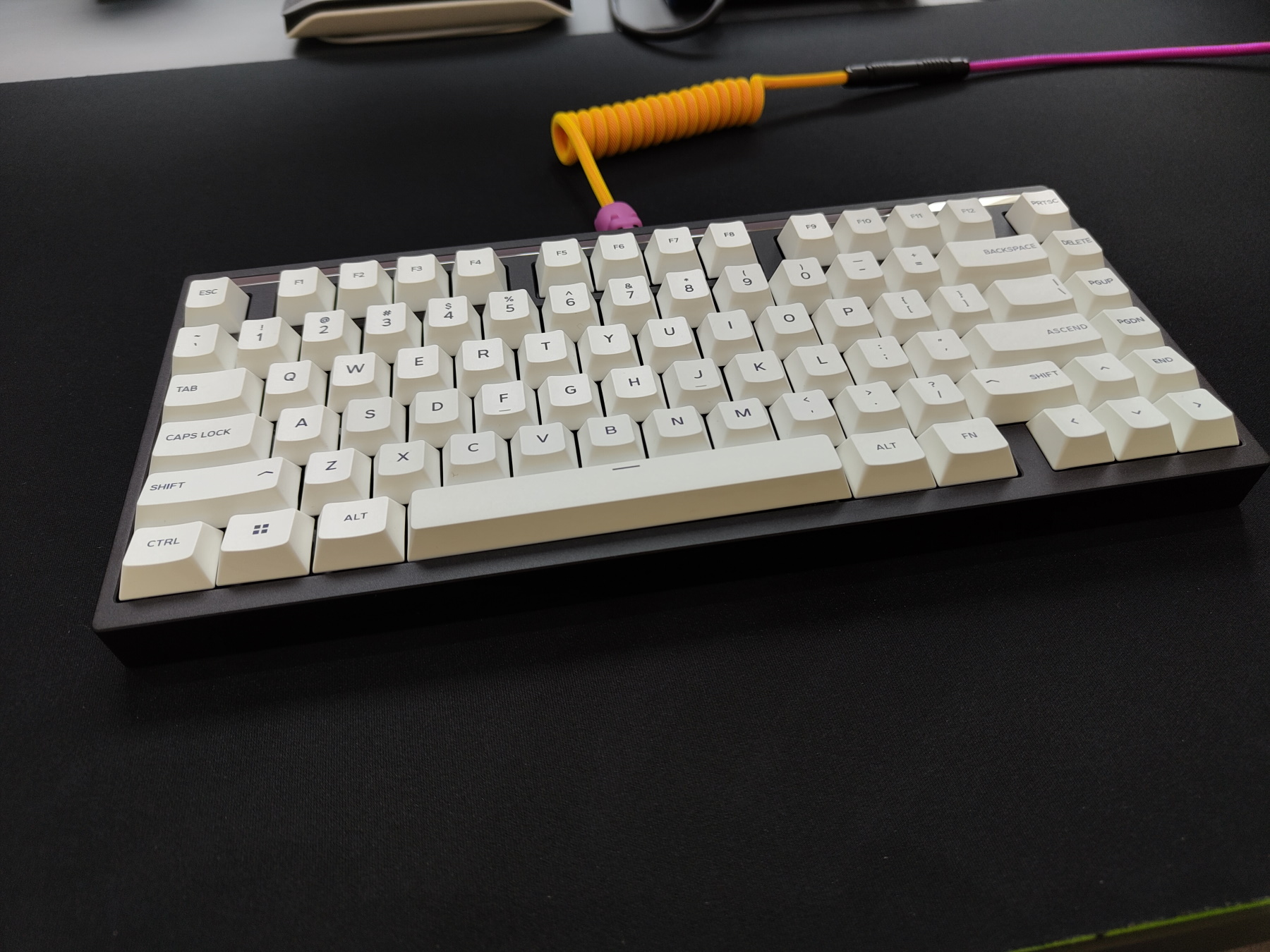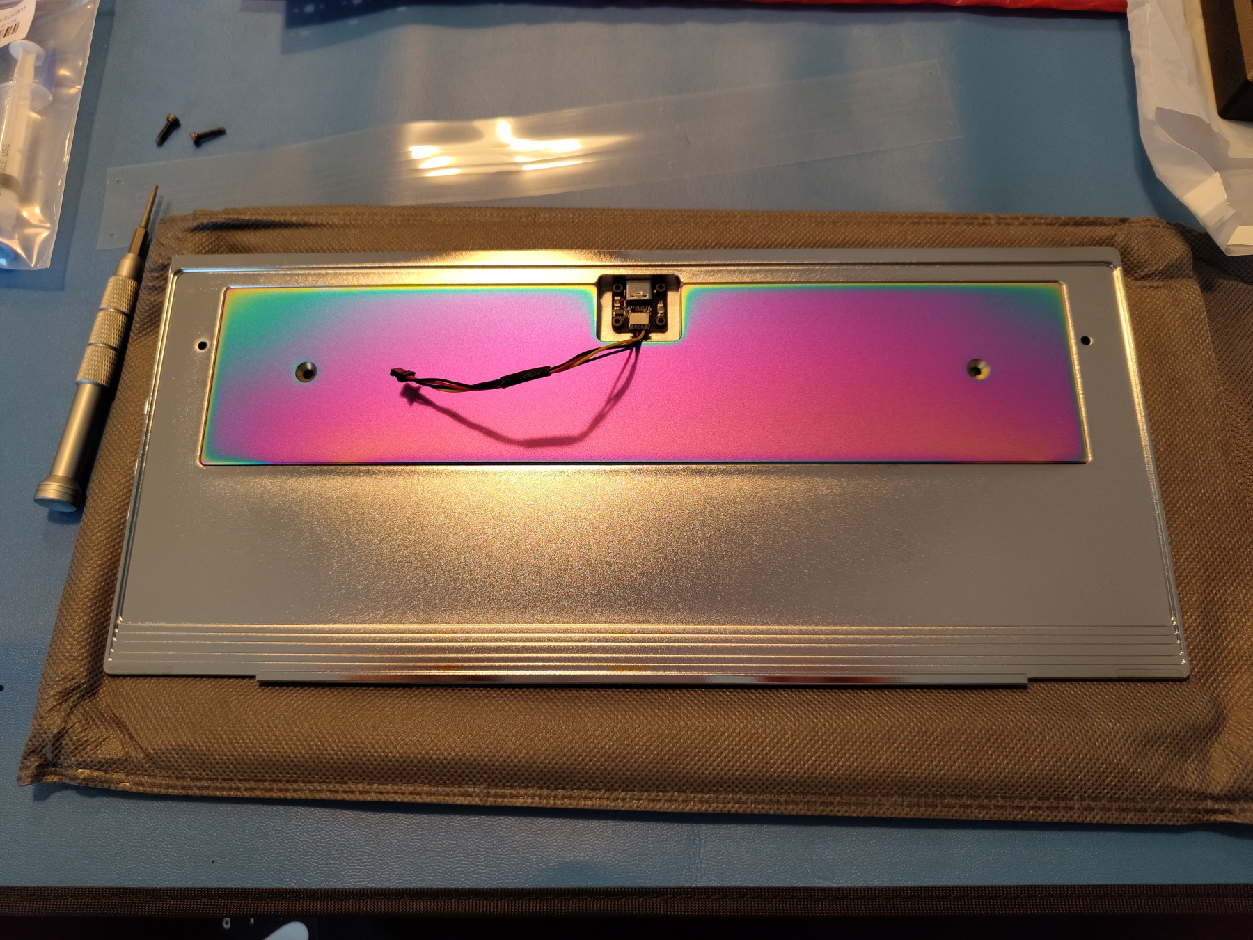 Zwischen Weihnachten und Neujahr mal die Mode Design Sonnet zusammengebaut. Aktuell noch vorübergehend mit Glorious GPBT Keycaps, bis dann die Mictlan kommen (dauert noch ne Weile). Ich habe noch eine Internal Weight Multicolor Plate (PVD-coated stainless steel), die Silicone Base und das Plate Foam eingebaut. Als Plate habe ich Carbon Fiber genommen. Switches die Oil Kings. Vom Tippgefühl und auch vom Sound bin ich echt begeistert. Vom Sound nochmal ein Zacken besser als die Sixtyfive, wobei ich auch dort Silicone Base und Plate Foam habe. Jedoch dort die Black Aluminium Plate.