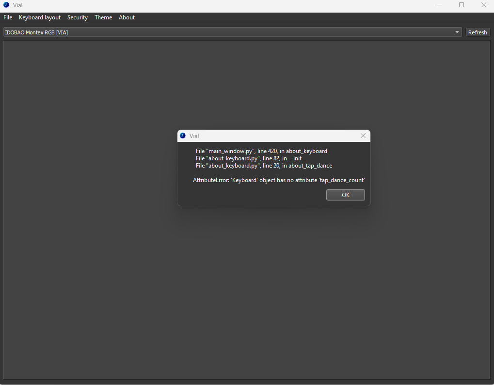 die Offizielle HEX von Idobao mal wieder draufgepackt (steht VIA im Namen)... Dann in VIA selbes Problem wie oben in den Screenshots, in VIAL allerdings passiert folgendes: