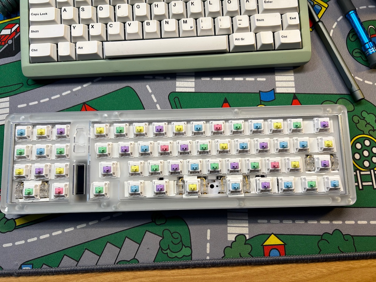 Genau das war bei mir auch das Thema, das PCB ist fein. Ansonsten lässt sich so PCB Kram auch recht einfach mit etwas löten fixen, wenn die Unterseite dann nicht transparent ist, sieht man auch nix davon. Musste ich bei der Clunker auch machen nachdem ich da einen Pin verkackt hab, der geht halt jetzt via Litze zum nächsten Punkt in der Row