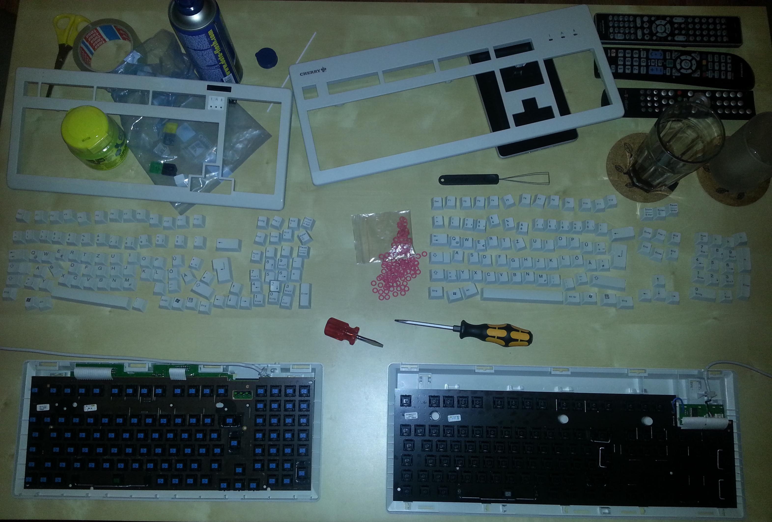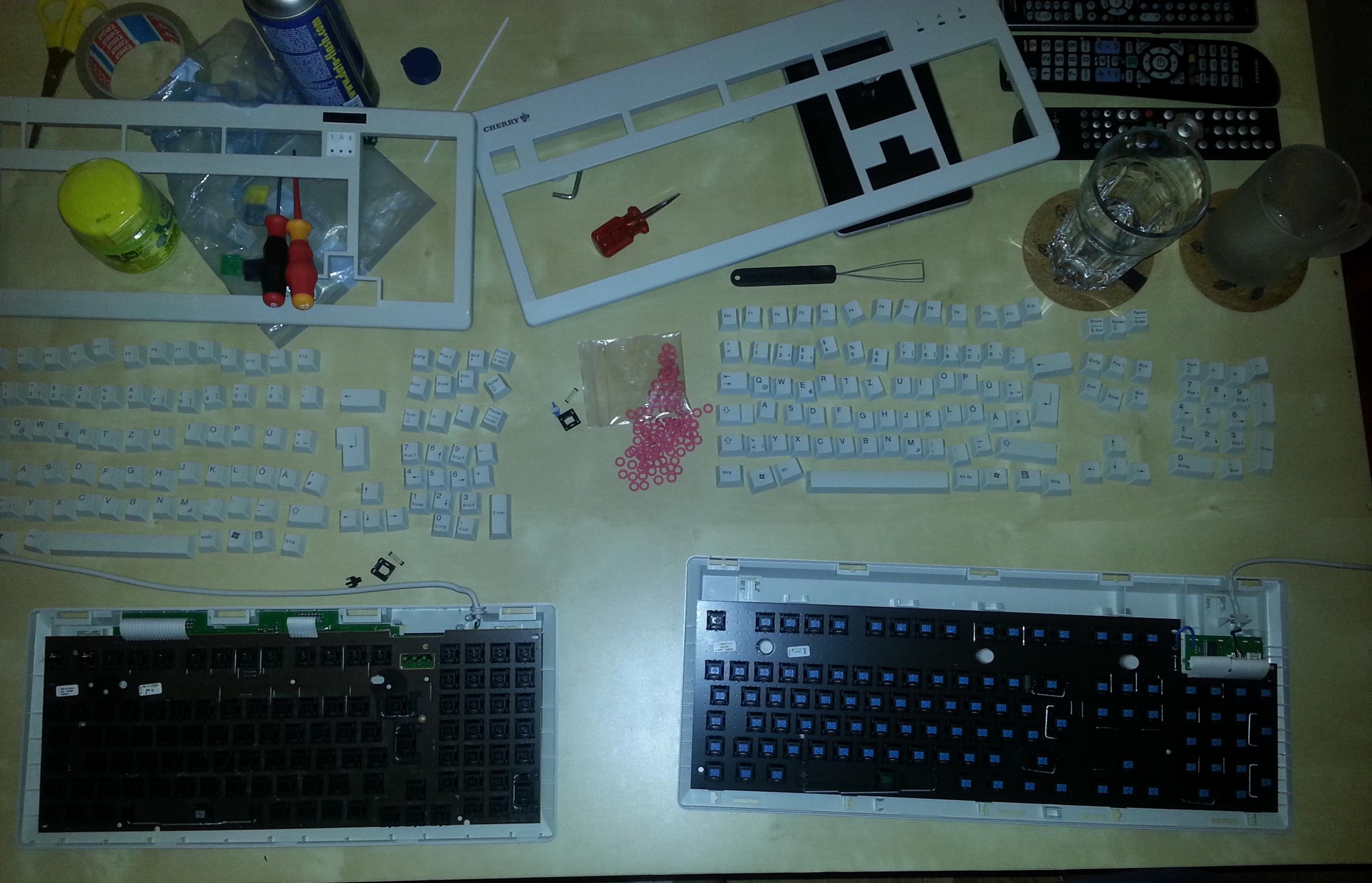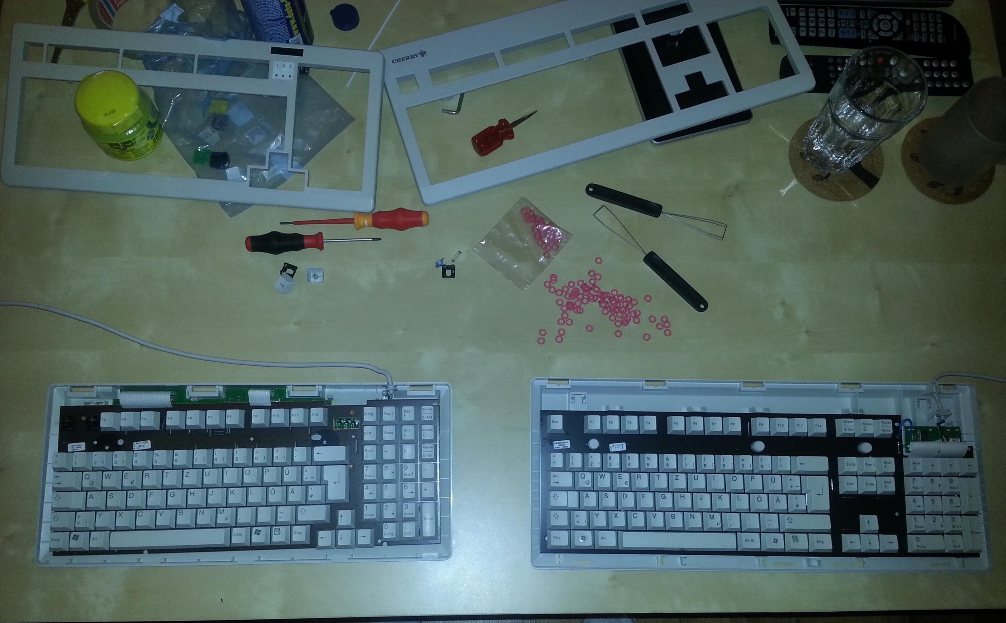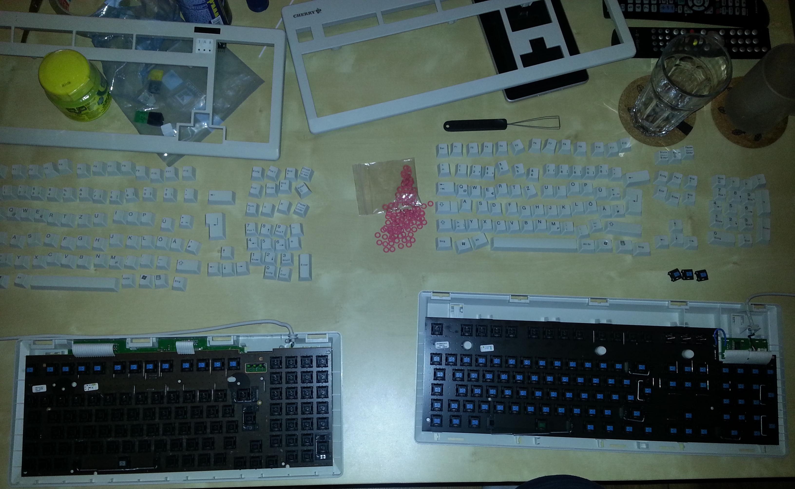 Der Umbau der Cherry G80-3000 auf "Ghetto Reds" mit O-Ringen ist nach gut 2 1/2 Stunden fertig (beinhaltet aber auch den Ausbau der O-Ringe bei meiner Filco).
