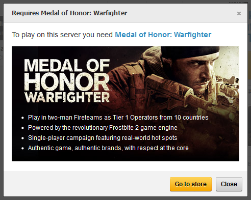 ich wollte heute mal wieder eine Runde MoH:WF spielen. Zuerst konnte ich den Serverbrowser in Battlelog nicht finden, was mich etwas stutzig machte. Über Umwege gelang es mich doch, nur wenn ich einem Server joinen wollte, kam folgende Meldung: