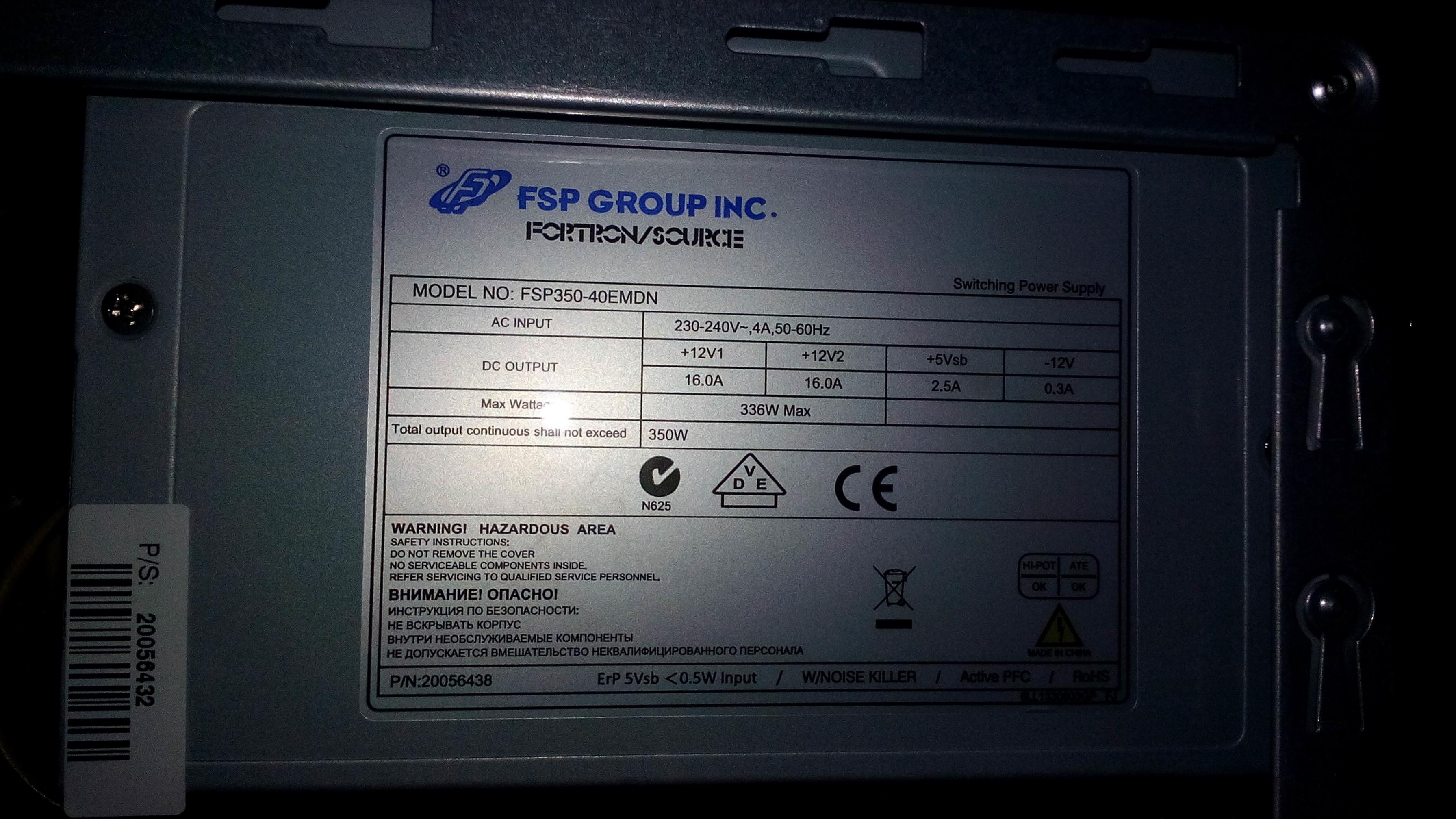 mach mal bitte die PC Seitenwand auf und mach mal ein Foto vom Netzteilaufkleber und vom Mainboard und Poste das