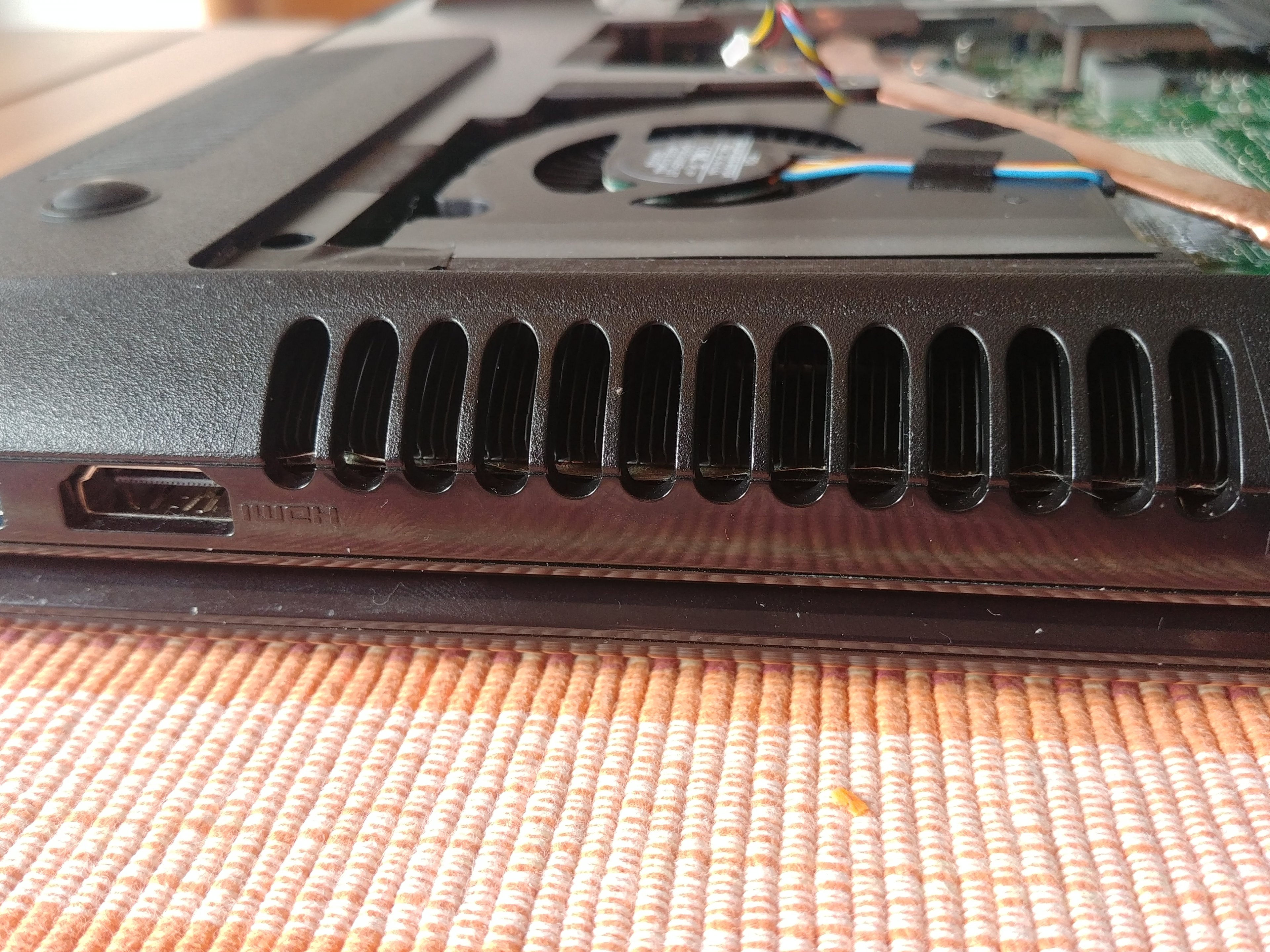 Was mir aber nun auffiel nachdem ich den Laptop natürlich einige Male starten musste ist wie sauber der Lüfter und die Kühlrippen der CPU aussehen. Der Laptop lief vorher täglich und war in Benutzung für das Büro einer Einrichtung, die mit Kindern arbeitet. (Ohne jetzt Namen nennen zu wollen, ich will damit nur darauf hinweisen er war täglich in Gebrauch)