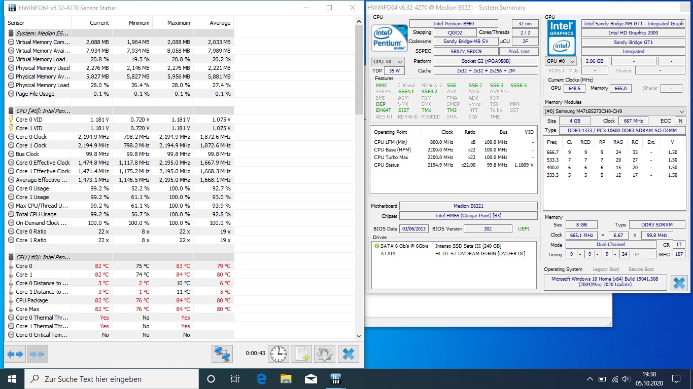 CPU: Intel Pentium B960 - werde ich wahrscheinlich erweitern auf einen i5 2430m oder 2540m