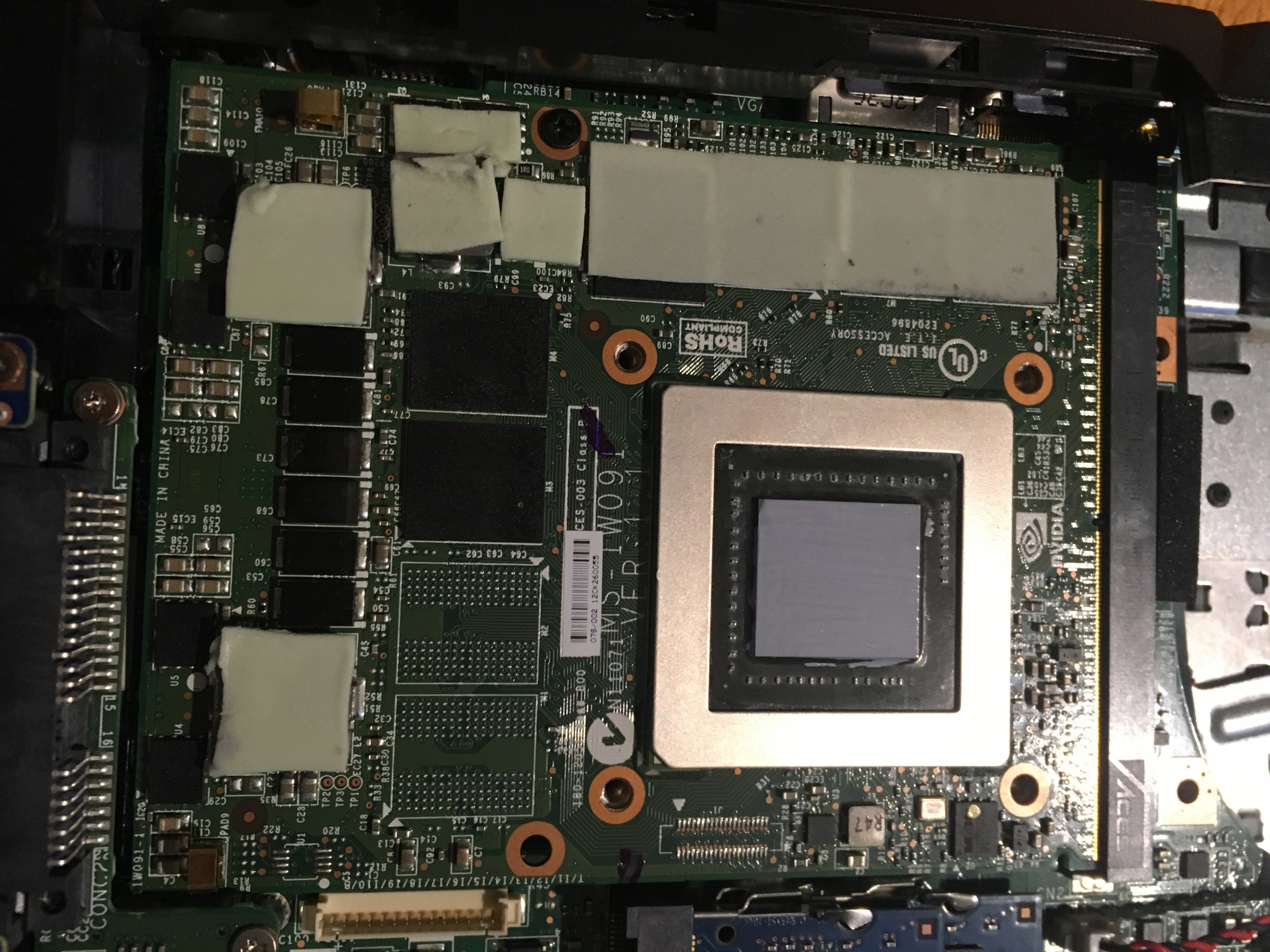 In letzter Zeit verursachte der Graka-Treiber in Spielen regelmäßig Abstürze (Meldung von Windows). Selbst mit neuestem BS und Treibern konnte ich das Problem nicht beheben. Nun hatte ich die Graka selbst im Verdacht, also Läppi geöffnet und Kühler von Prozzi und Graka ab und neue WLP drauf sowie Lüfter entstaubt. Auch dies brachte keine Besserung. Also Kühler der Graka wieder ab (Temperaturprobleme gab es eigentlich keine) und nachgesehen, ob bei Erneuerung der WLP was schiefgelaufen sein könnte. Sah alles gut aus, Graka kurz rausgebaut, neue WLP drauf, zusammengeschraubt.