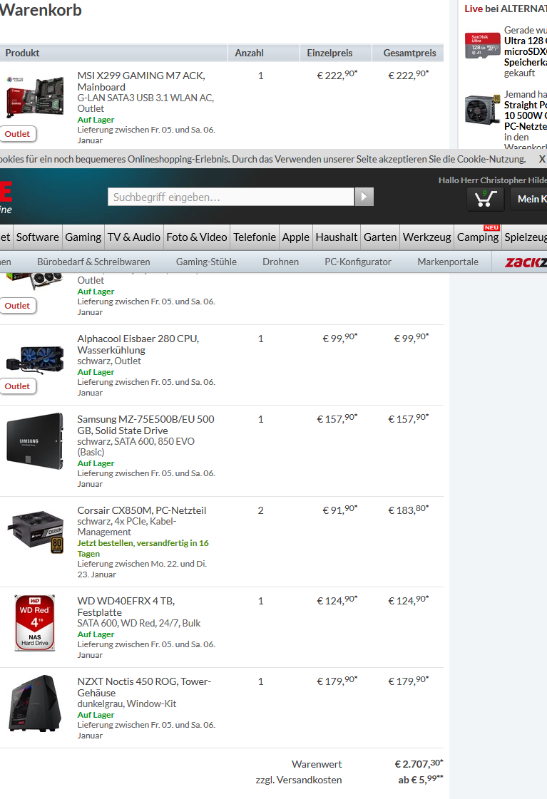 Wenn ich den PC bauen würde, käme eine andere SSD, RAM als Quad Channel und eine AiO mit zumindest einem 240er Radi hinein.