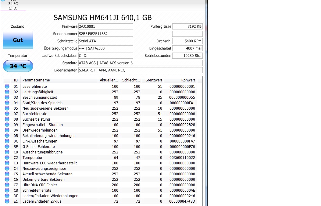 Könntest noch ein Diagnose-Tool von Seagate (haben die Festplattensparte von Samsung ja übernommen) runterladen und damit mal die Platte testen.