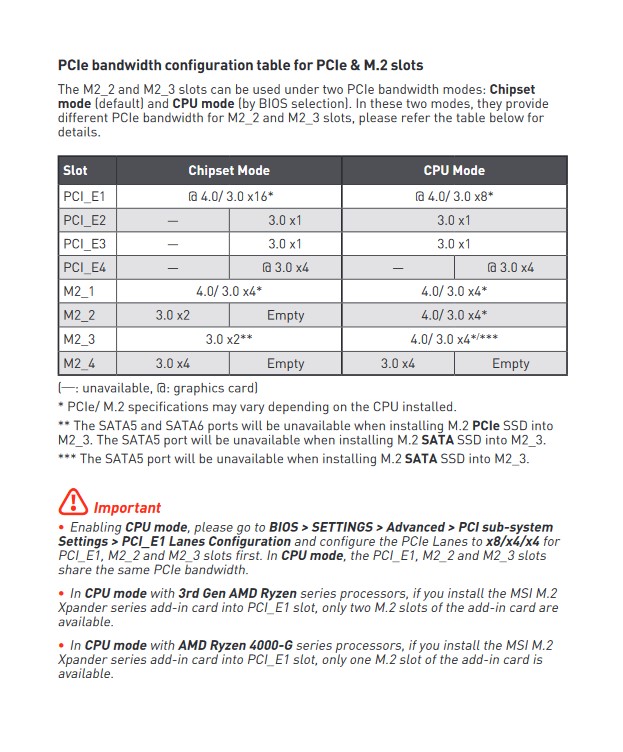 Im CPU Mode wird die GPU von 4.0/3.0@16 auf 4.0/3.0@8 beschnitten (kommt jetzt drauf an wie empfindlich man ist), dafür hat man dann aber 3x M.2 mit 4.0 x4.