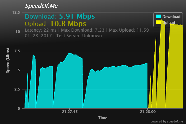 Speedtest.net sagt 16Mbit/s, Unitymedia wieder nur ~7Mbit/s.