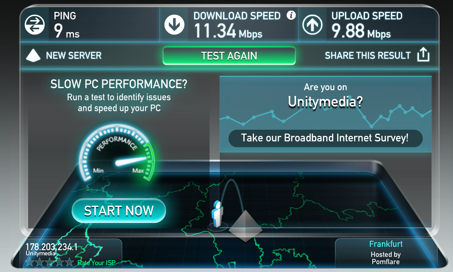 Ich habe auch testweise den Download pausiert in Steam und nach 10min konstant guten Downloadraten dann erneut einen Speedtest gemacht, diesmal bei speedtest.net und speedtest.unitymedia.de.