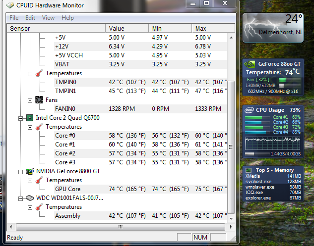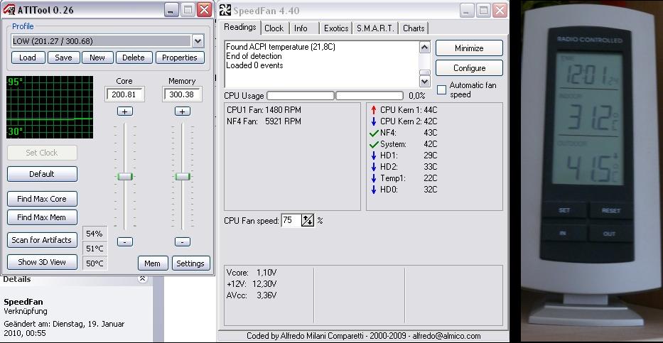 Und bei mir ist alles ultra silent, genau wie im Winter. Nur eben "etwas" wärmer...HighEndKlaus schrieb:Merlin.. deine Temps sind echt krass.. ich hab mit meiner crossfire config max 72°C in crysis.. dazu muss man aber sagen das ich dauerhaft 65% Lüfterspeed habe xD Kopfhörer sind meine retter.