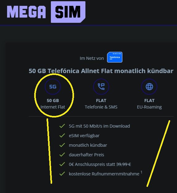 Und dann halt noch inkl. 5G (mit 50 Mbit, was vollkommen ausreicht) und monatl. kündbar. Nice.