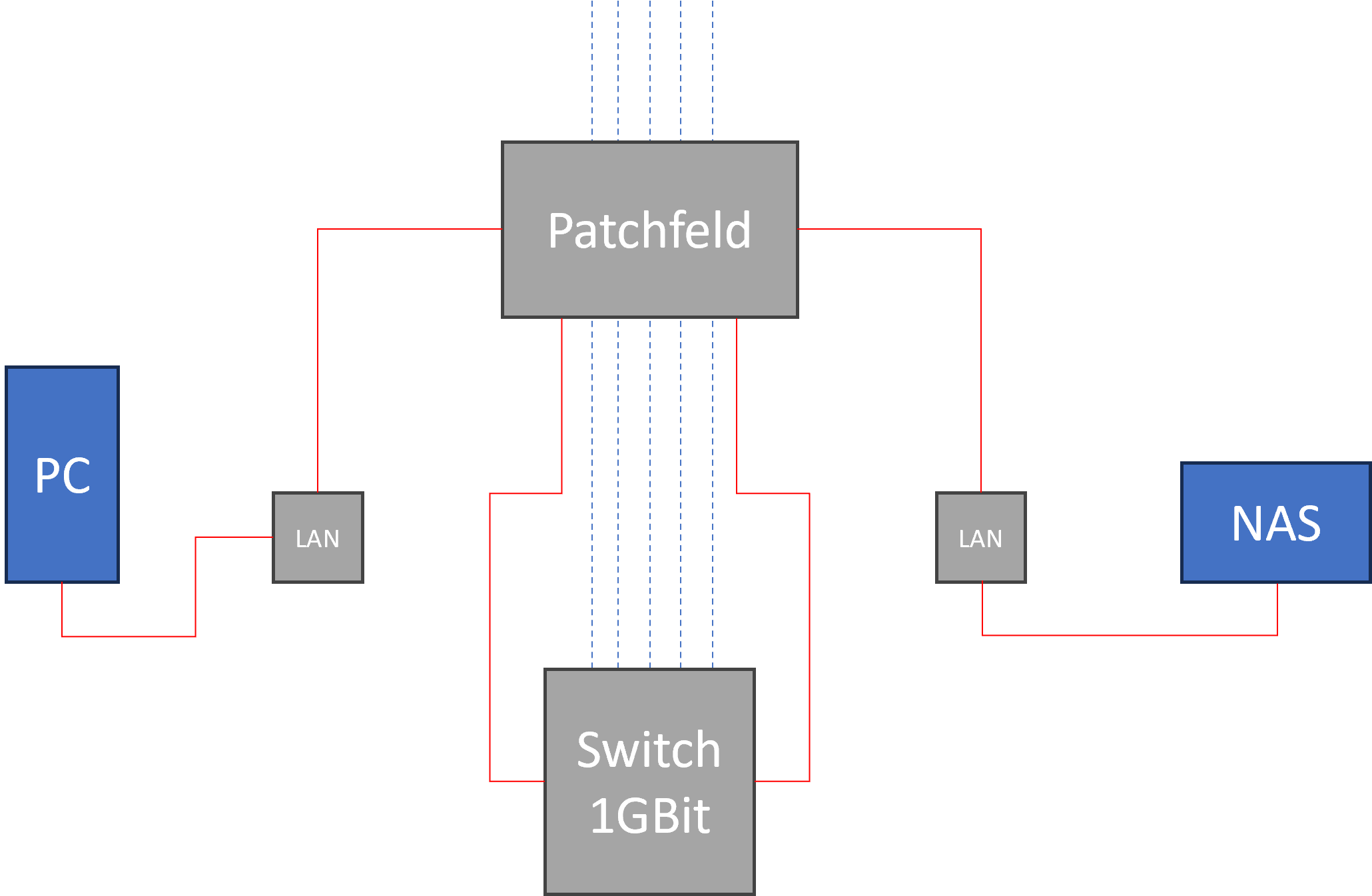 Klappt das so "einfach", wenn ich vom Patchfeld den PC und das NAS zuerst in einen separaten - schnelleren - Switch führe, während alles andere am normalen Switch bleibt? PC und NAS können natürlich mehr als 1 GB.
