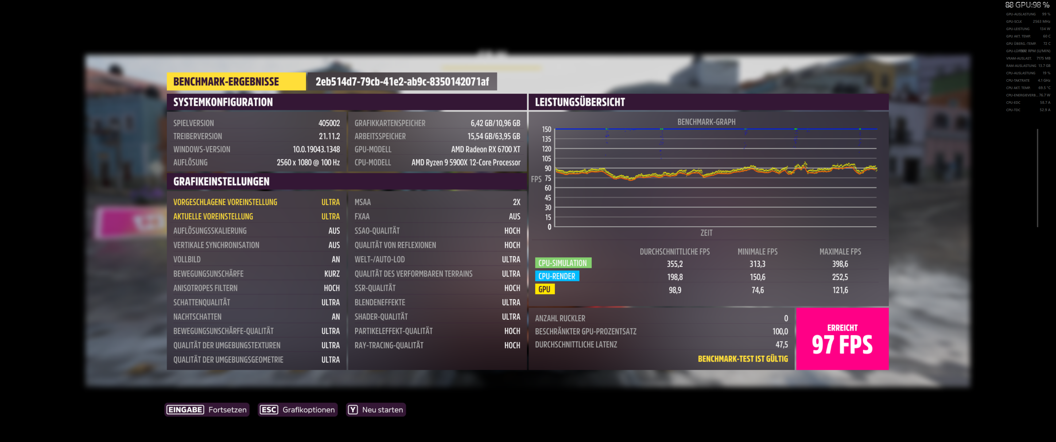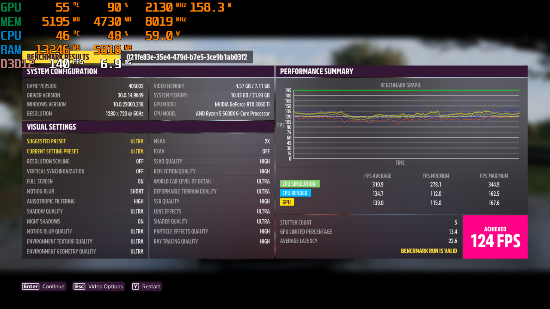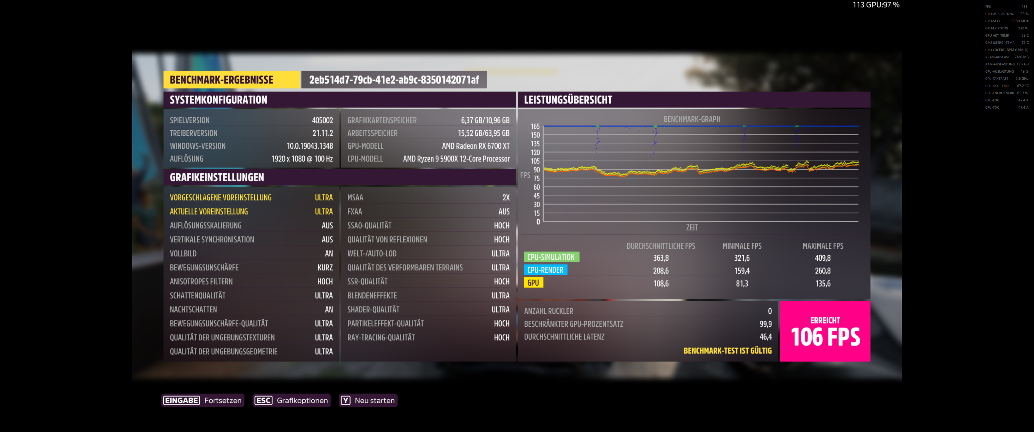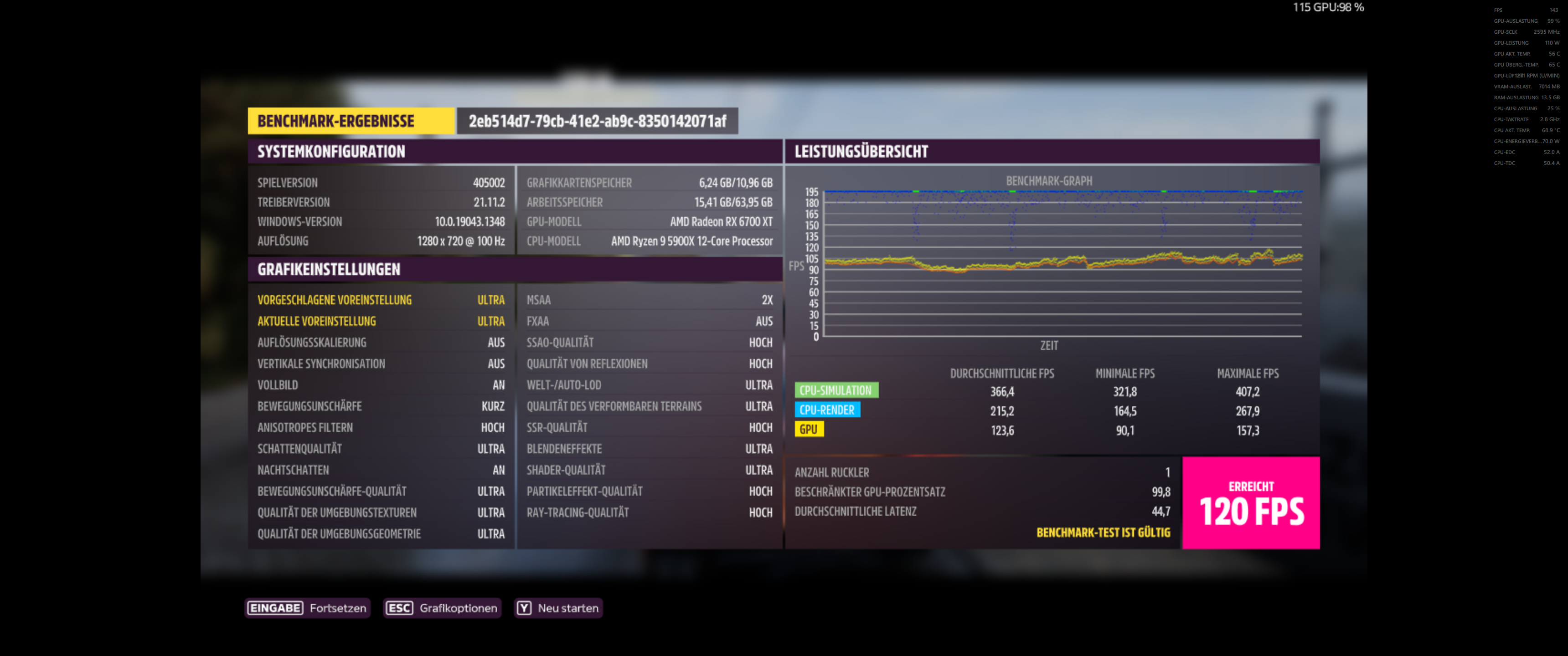 1.280 x 720, Preset Ultra (für Nerds!): 118