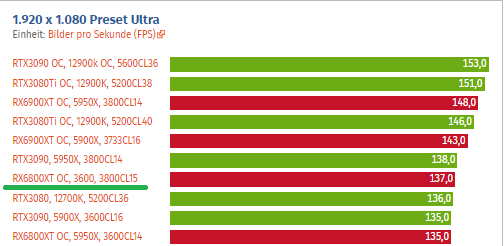 Laphonso schrieb:Ja klar, das ist ja das oc Ziel.Und der 12900K ist hier wahrscheinlich selbst nochmal für 2-3 fps verantwortlich, nicht die 3090 exklusiv.