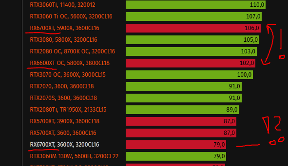5hred schrieb:Ich kann mir nicht vorstellen, dass die 3600X CPU mittlerweile so mies ist, dass diese die 6700XT so sehr ausbremst, dass die nicht nur hinter die 6600XT landet, sondern auch die Rücklichter der 5700XT zu sehen bekommt....