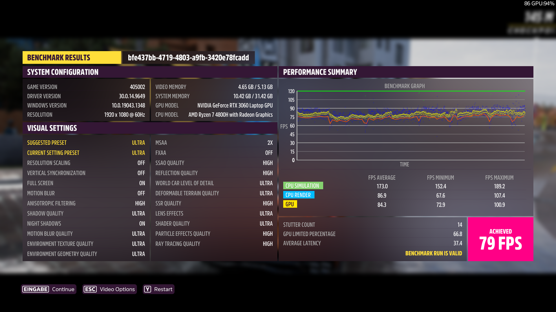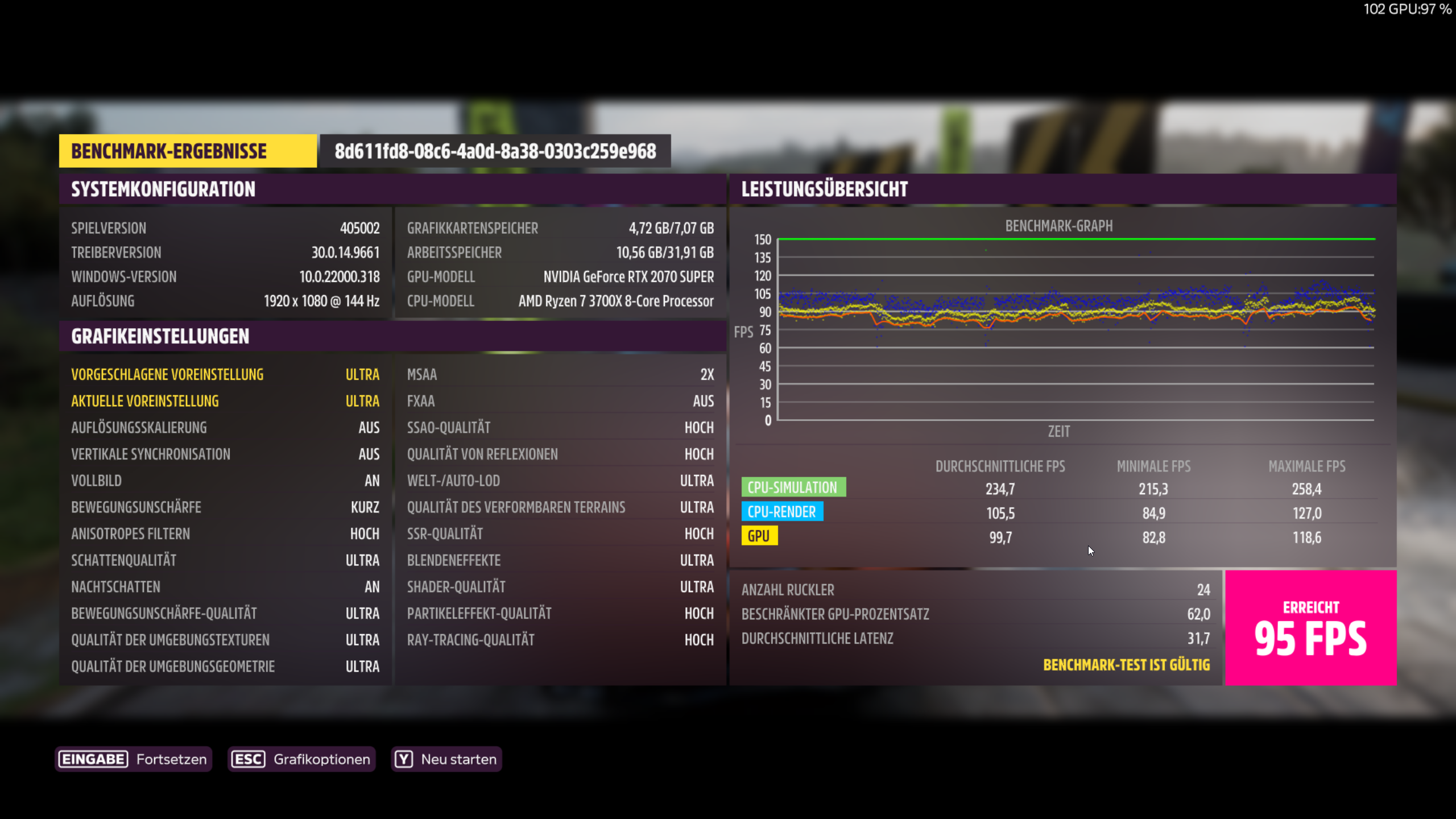1.280 x 720, Preset Ultra (für Nerds!): 118