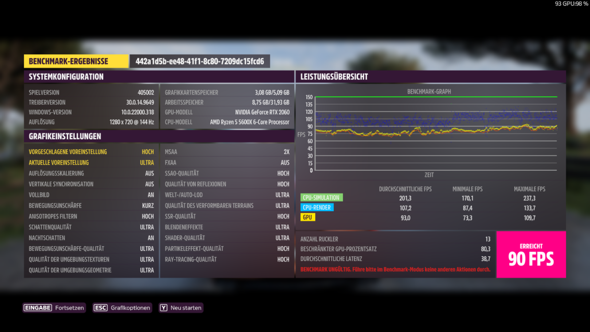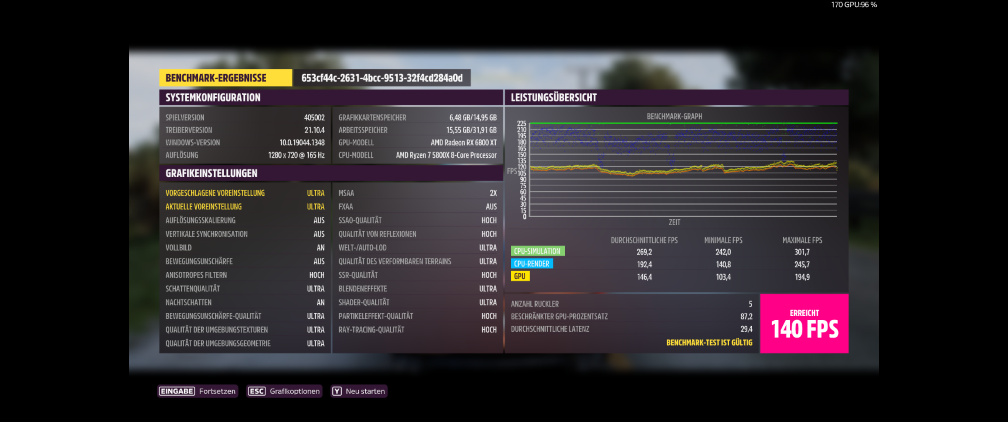 1.280 x 720, Preset Ultra (für Nerds!): 140