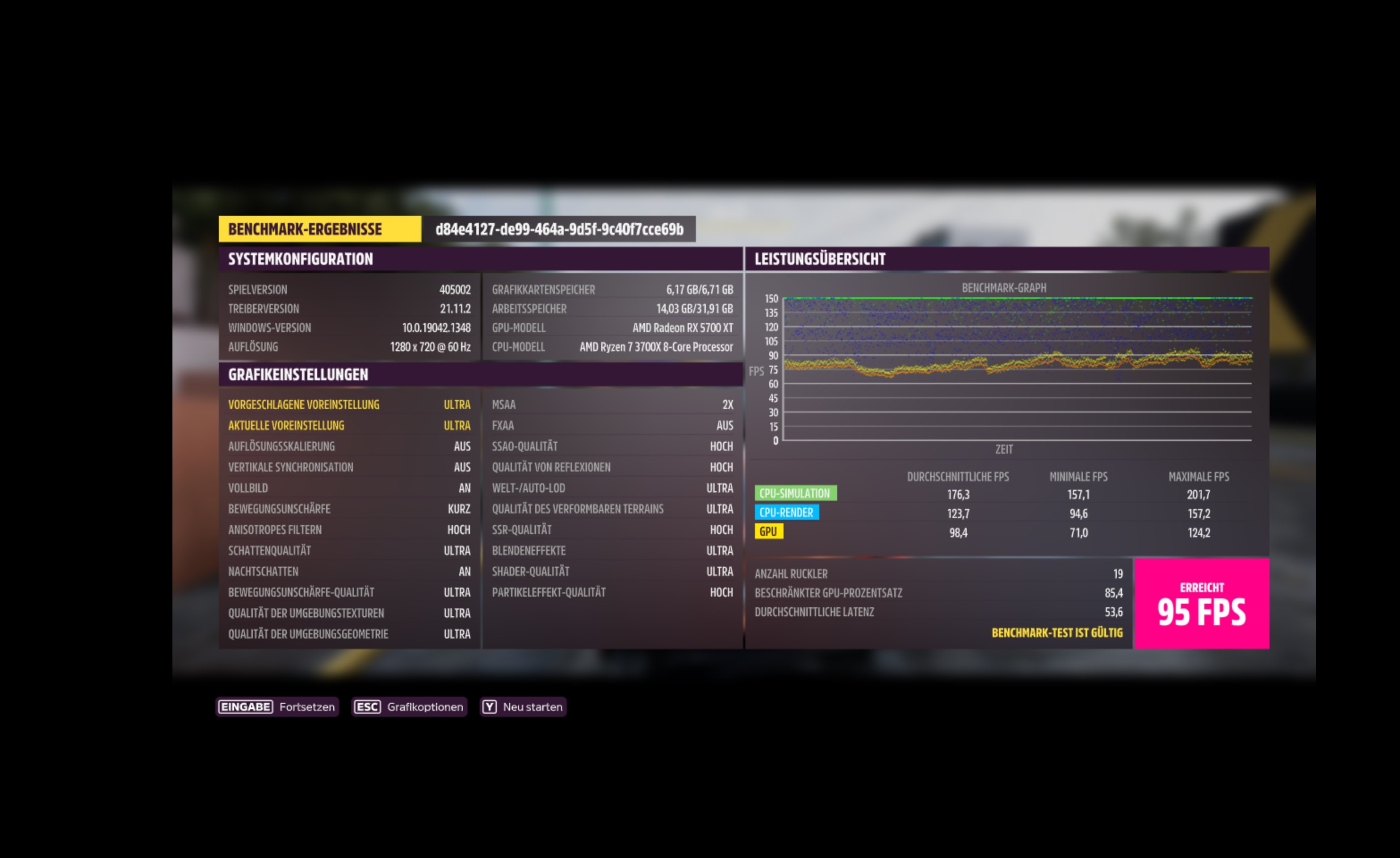 Hier noch die Daily Settings auf dem Rig: Extreme Preset mit 4x MSAA und FXAA