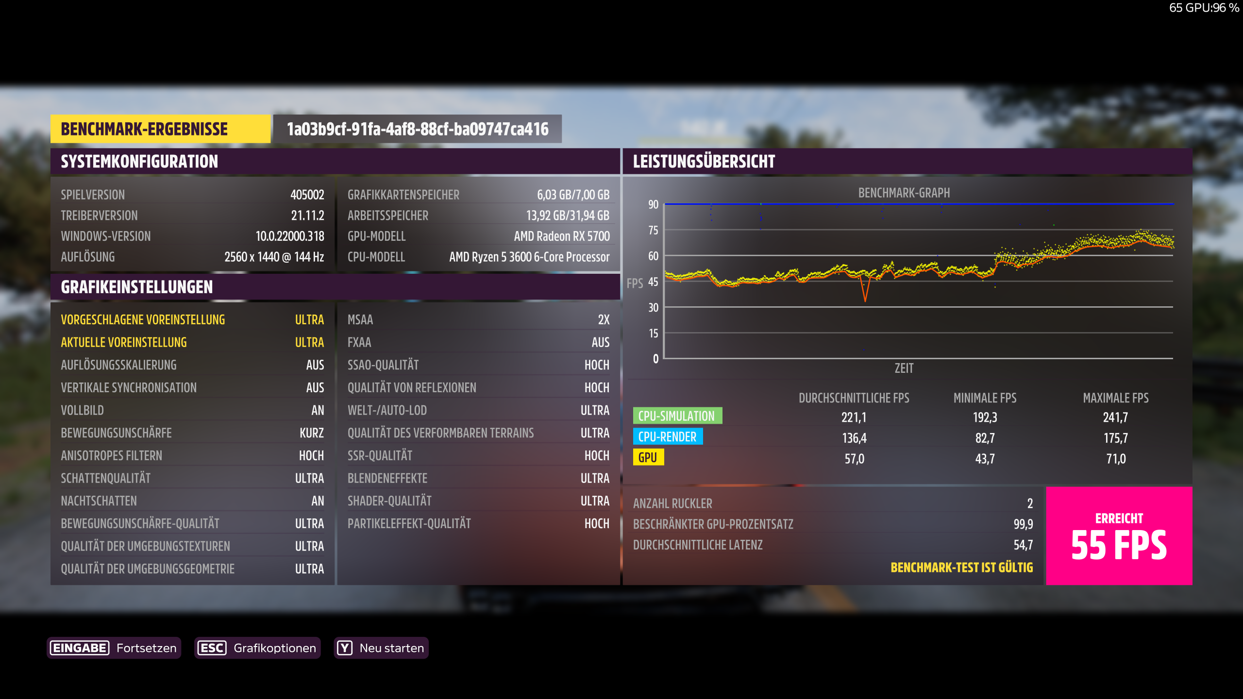 Komisch ich hab genau das gleiche System wie du und erreiche 122 FPS bei 2.560 x 1.440, Preset Ultra.AP87 schrieb:System: 6900XT, 5800X, 3600CL18