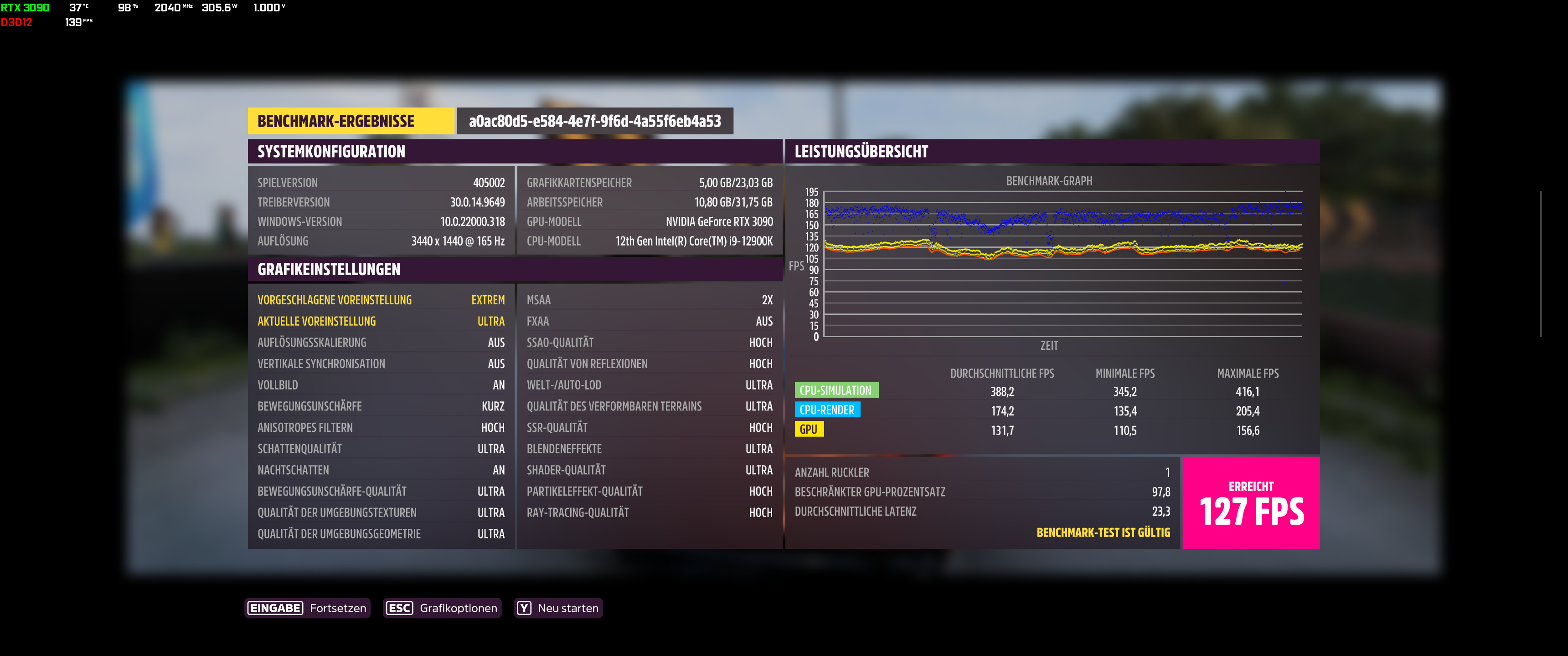 Der 84fps hier: https://www.computerbase.de/forum/posts/26242076/ kann weg. Der war verkehrt. War nicht mit Ultra, sondern individuell.Jan schrieb:Es füllt sich. Sehr cool! Was man jetzt schon sieht: Der integrierte Benchmark stößt in FHD definitiv an irgendein Limit. Das war im Test mit den maximalen Details in unserer Szene aus dem Spiele nicht zu sehen. Mal sehen, ob wir das am Ende auch noch auf das andere Perset oder die ander Szene zurückführen können.