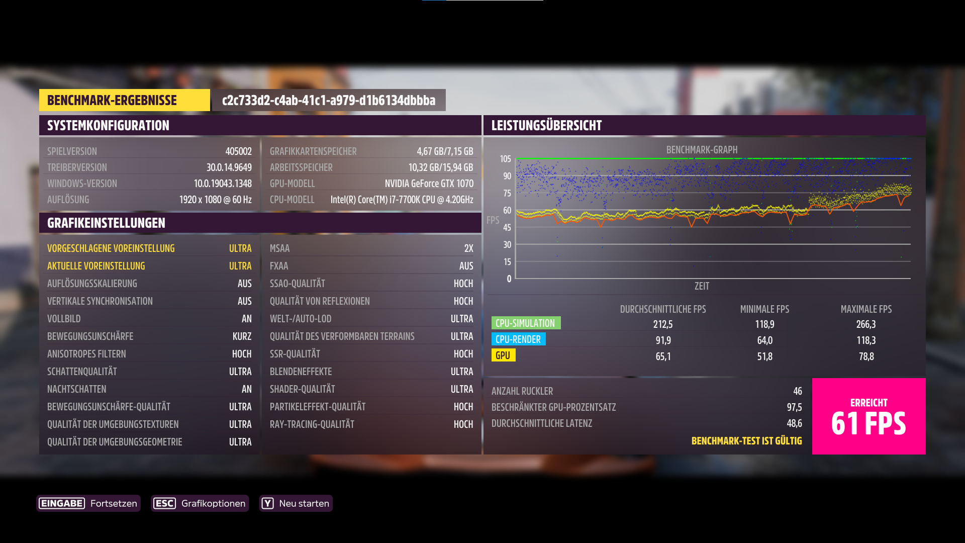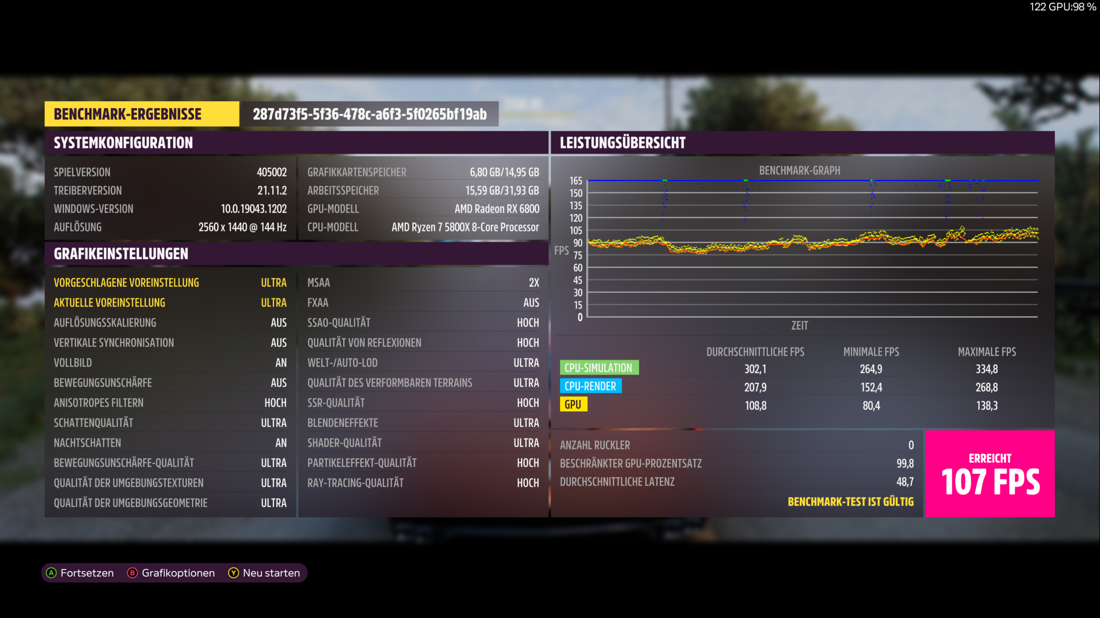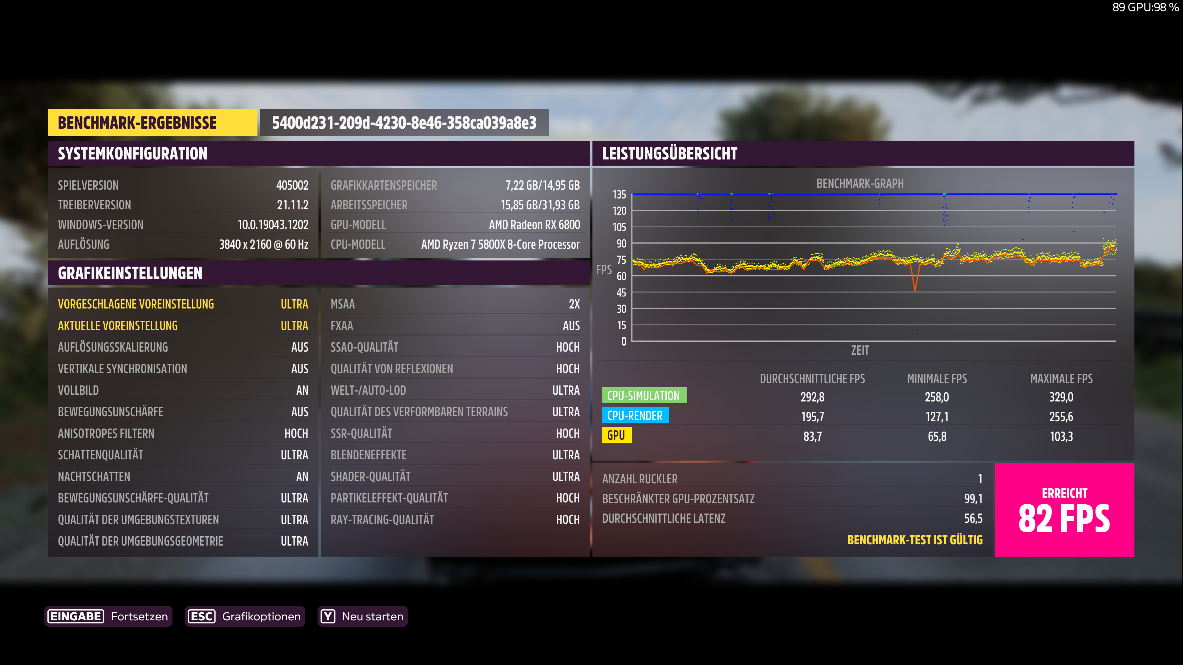 1.280 x 720, Preset Ultra (für Nerds!): 167