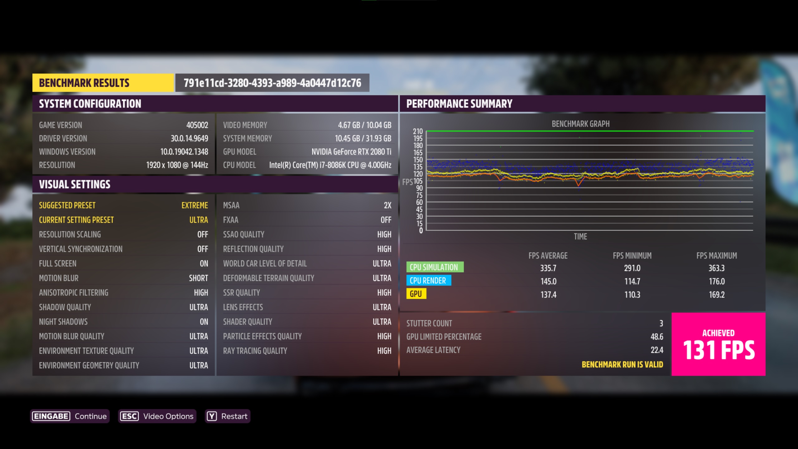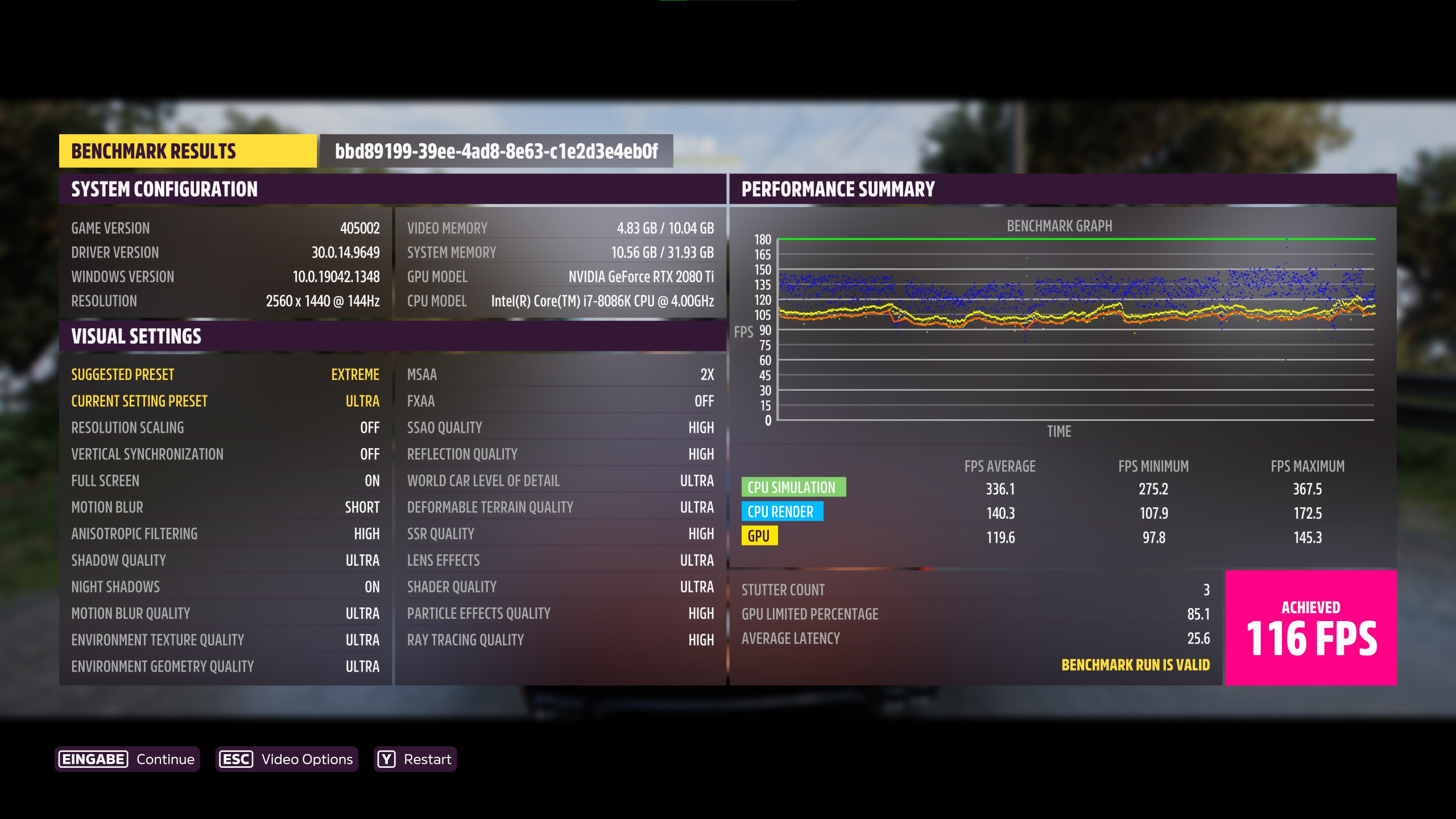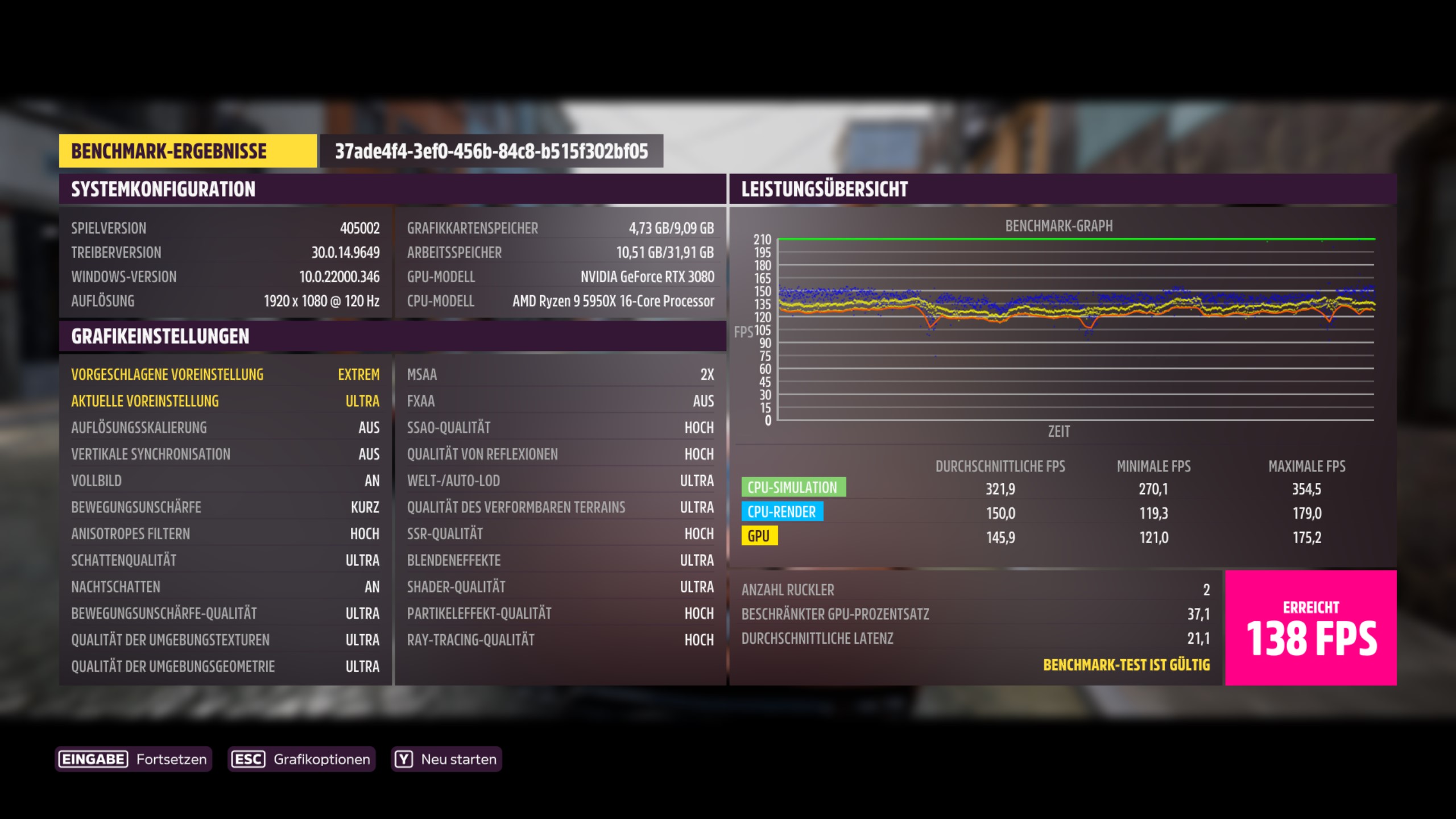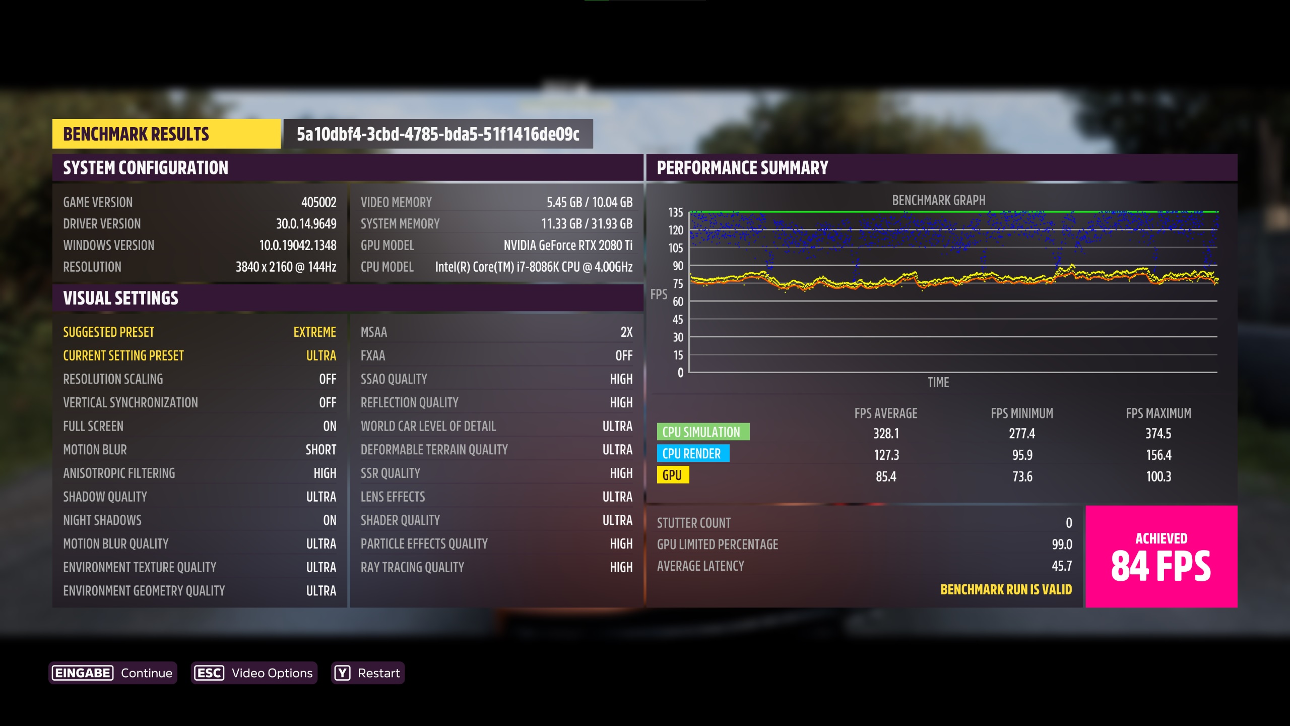 Zumindest hier ist meine Kombi gleich auf - gut, dass das auch meine Standard-Auflösung istnospherato schrieb:3.840 x 2.160, Preset Ultra: 84