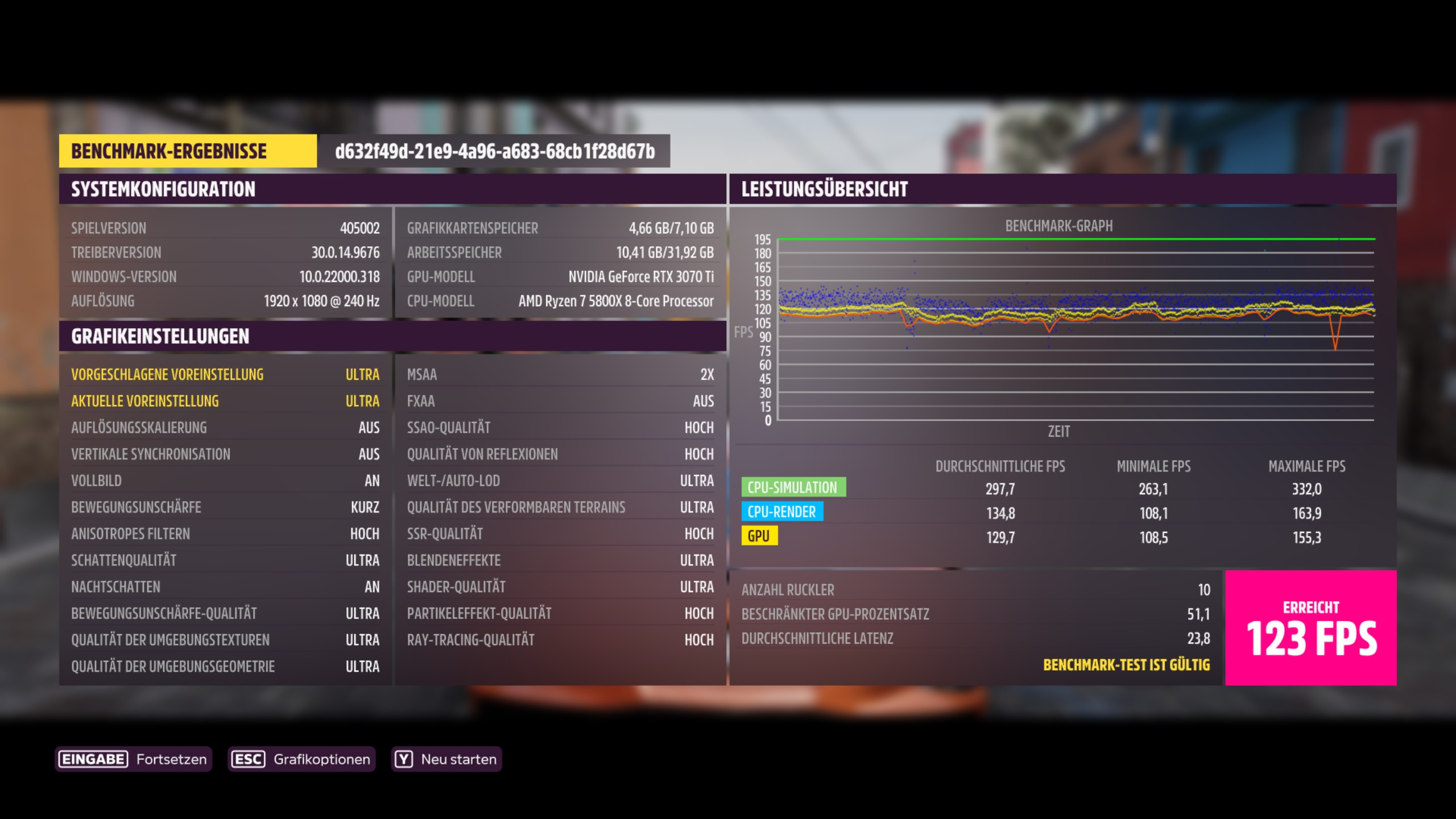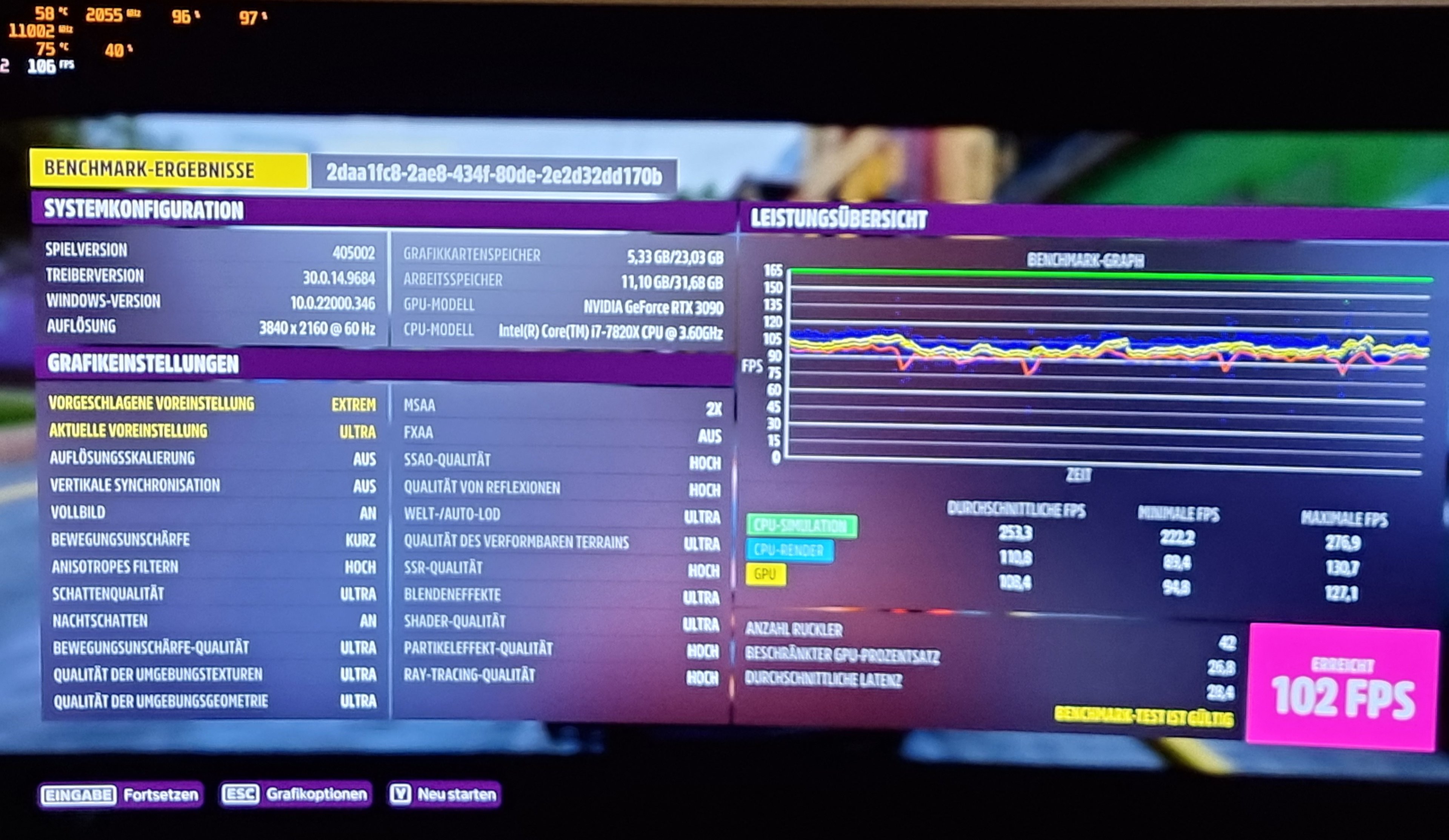 Und einmal auf Ultra Settings. 102Fps