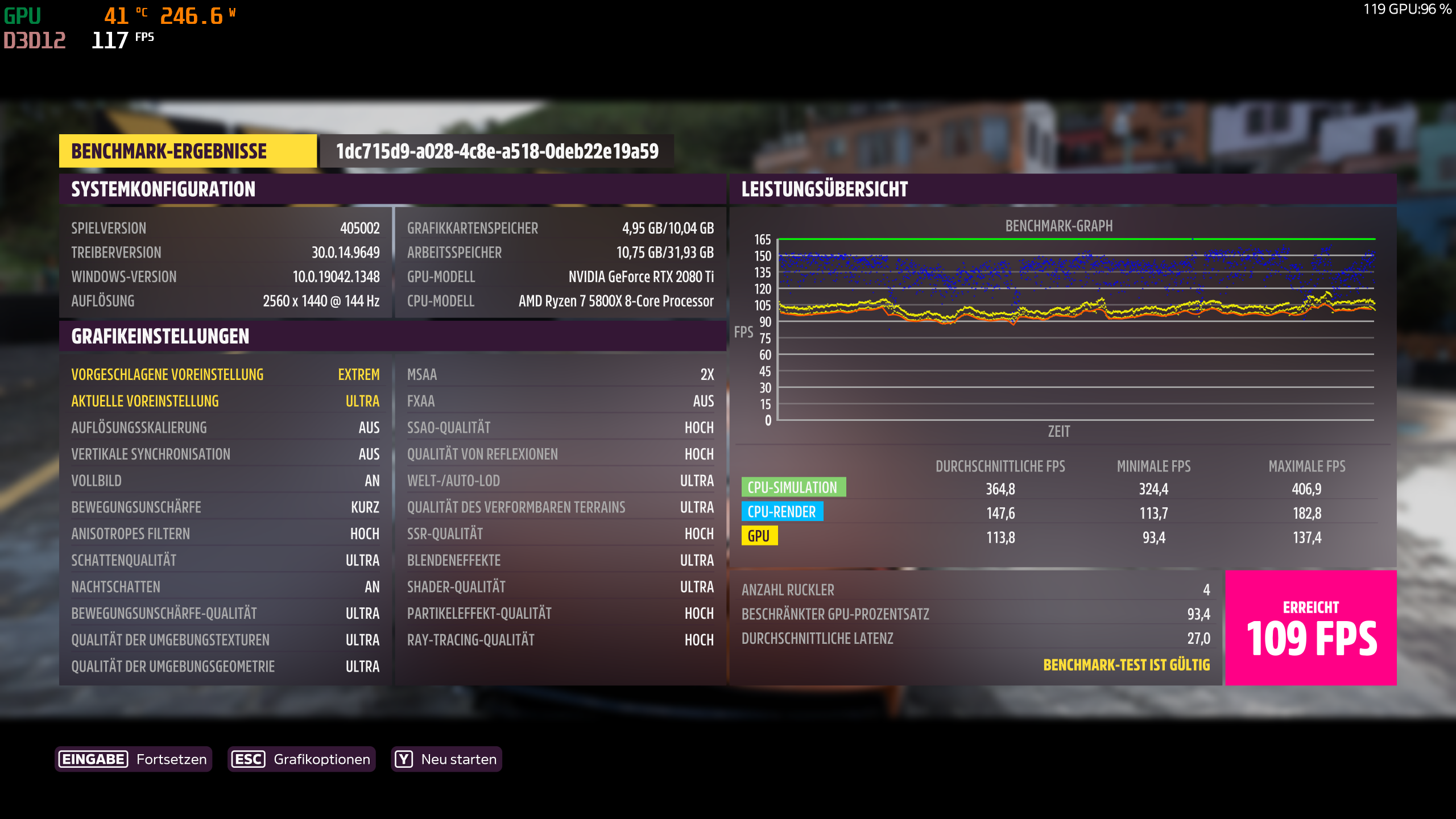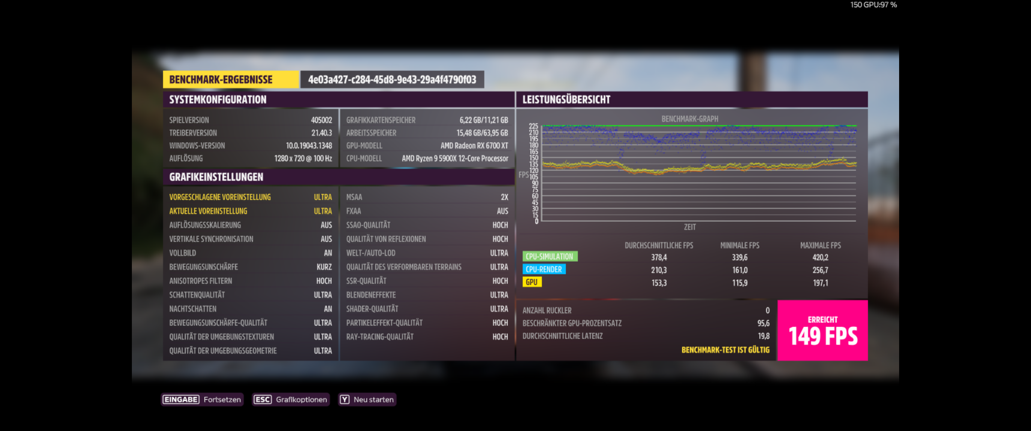 1.280 x 720, Preset Ultra (für Nerds!): 149