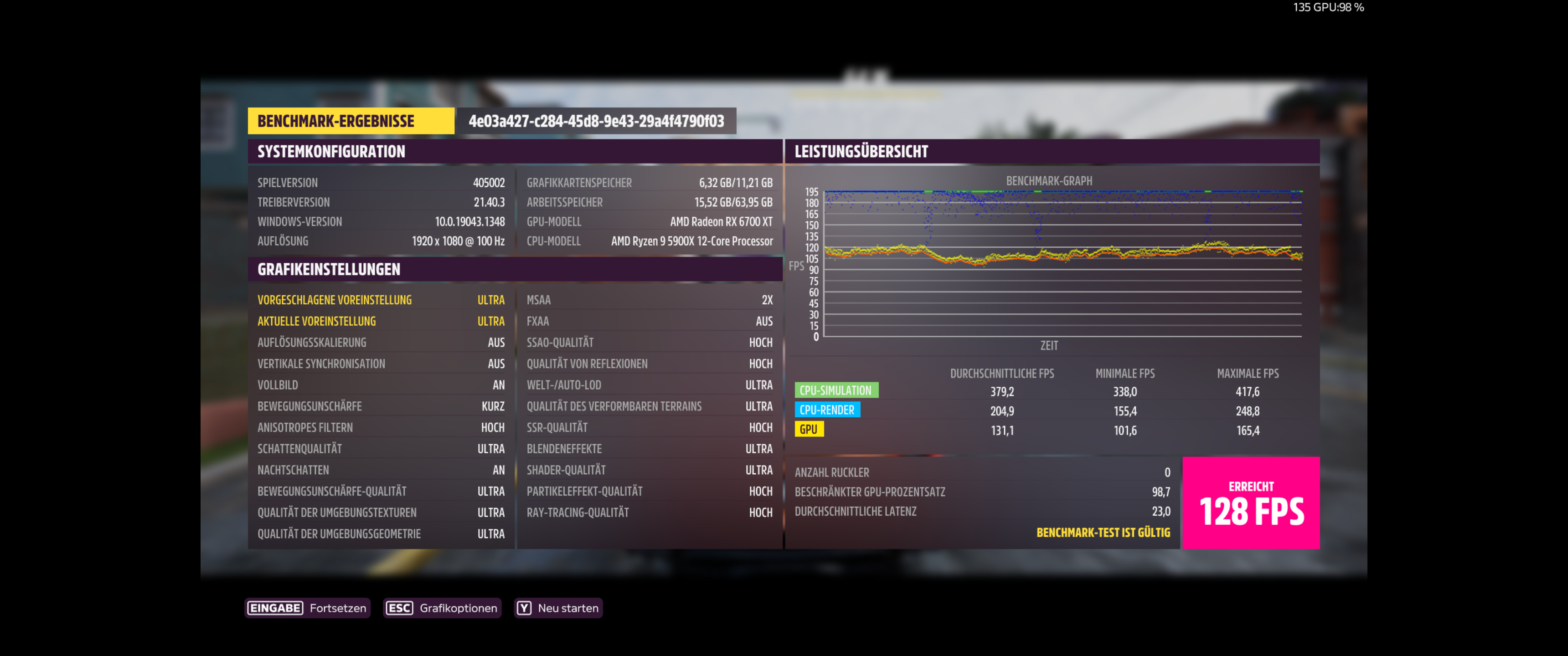 1.280 x 720, Preset Ultra (für Nerds!): 98