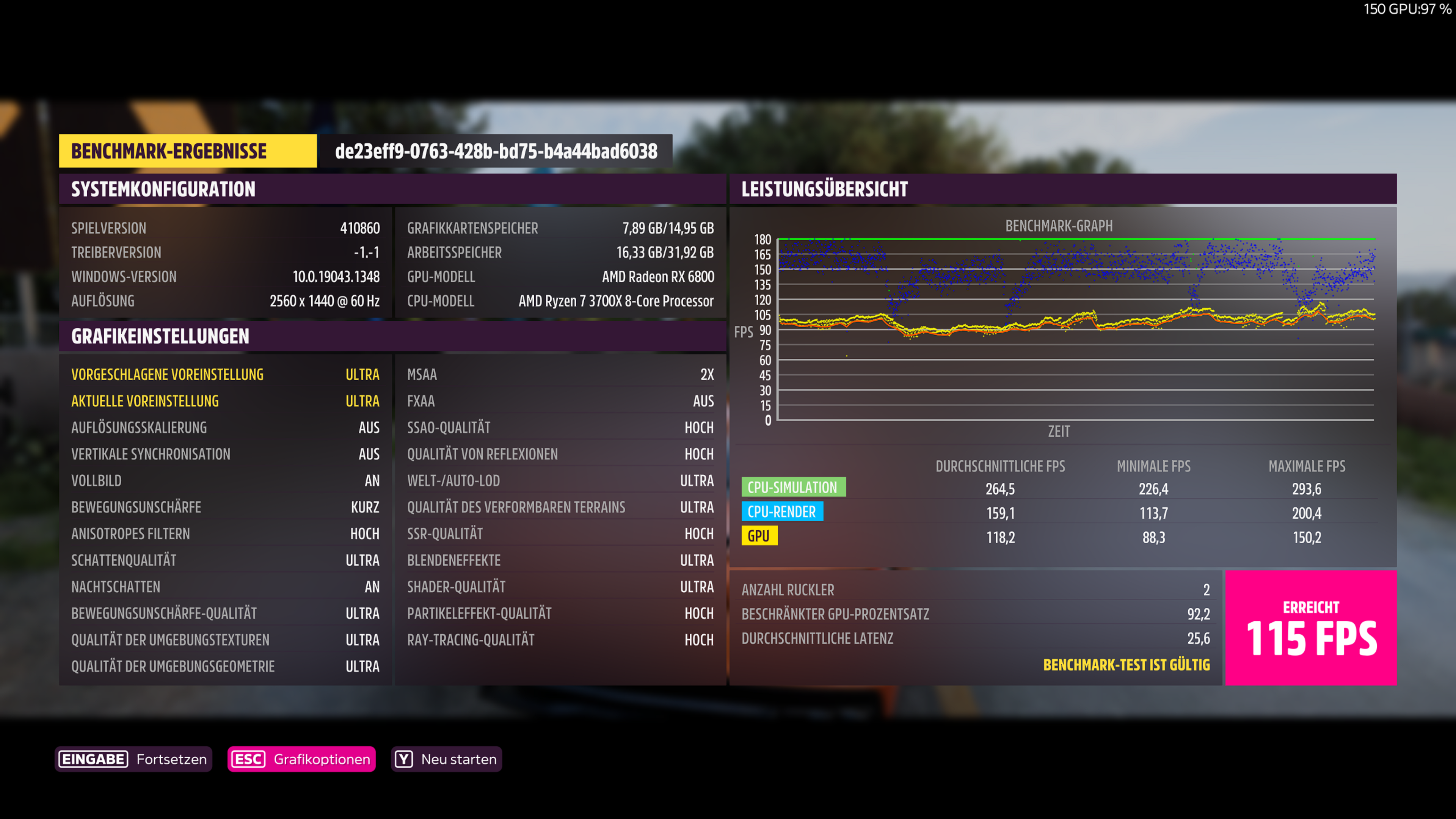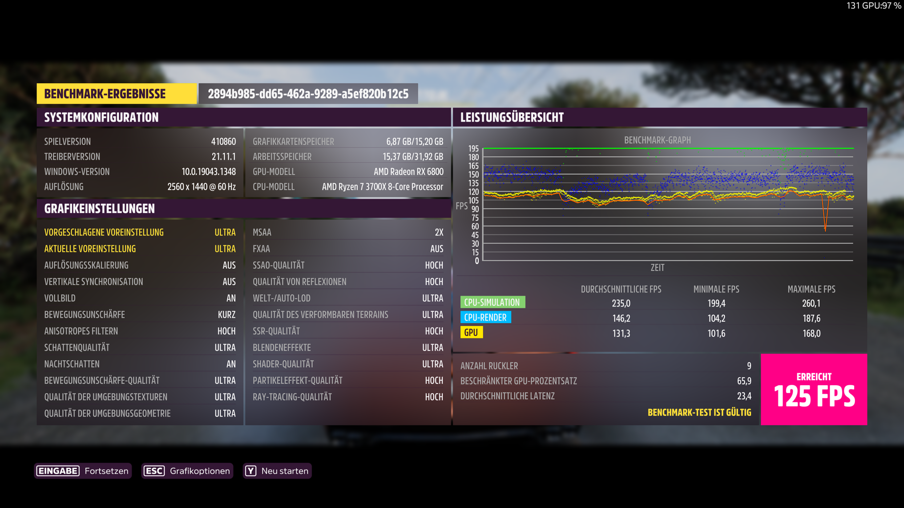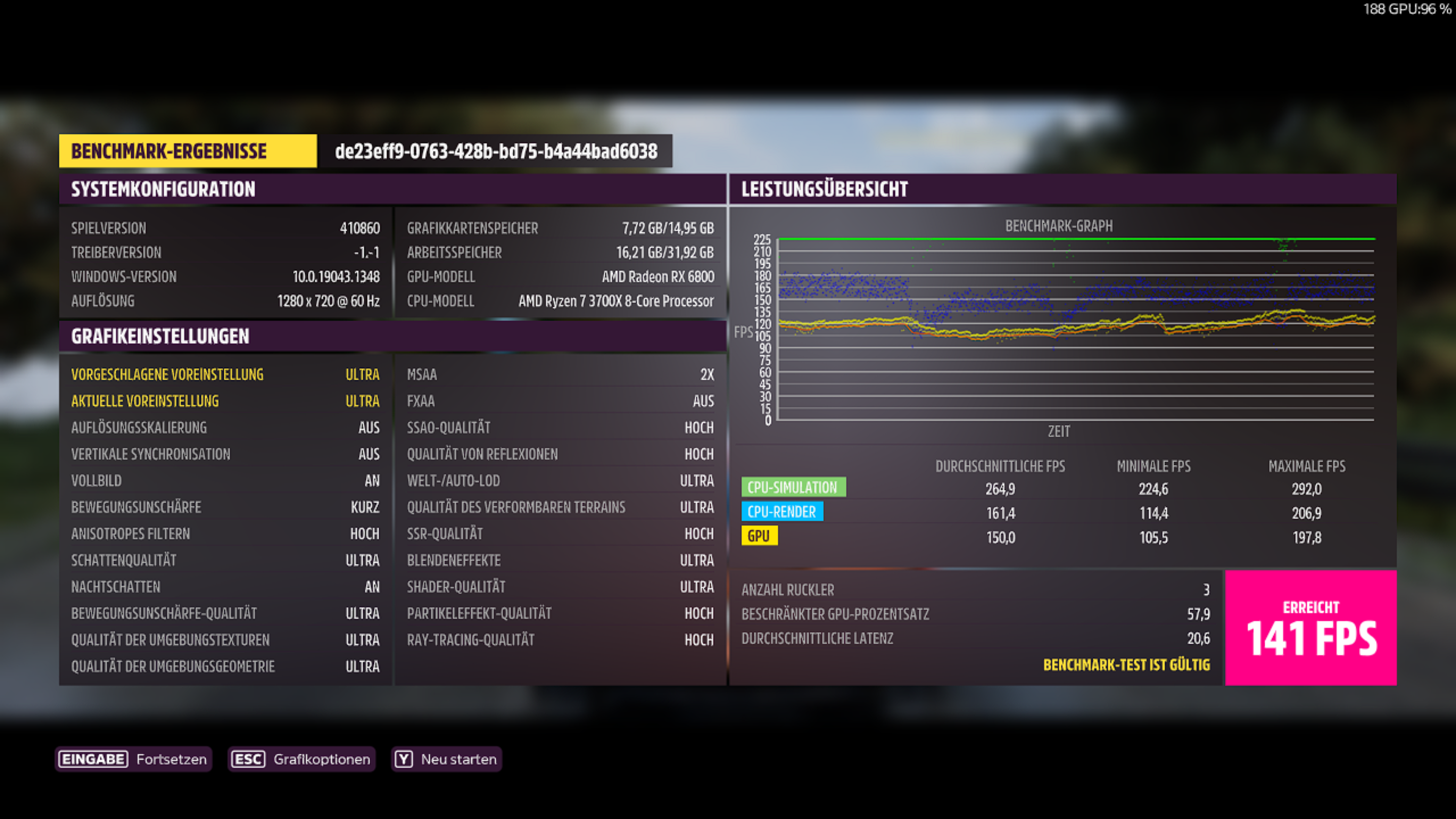 1.280 x 720, Preset Ultra (für Nerds!): 141