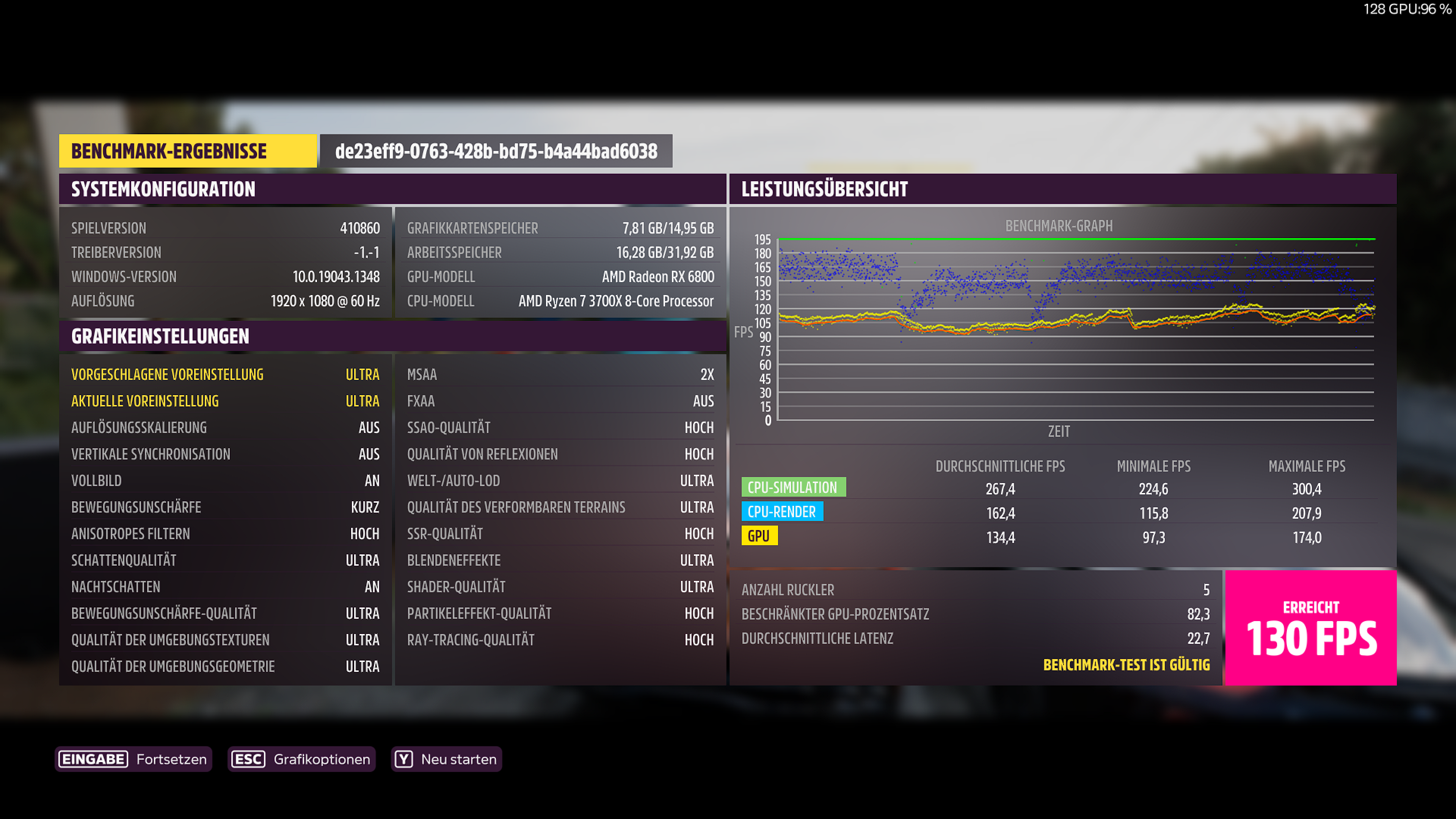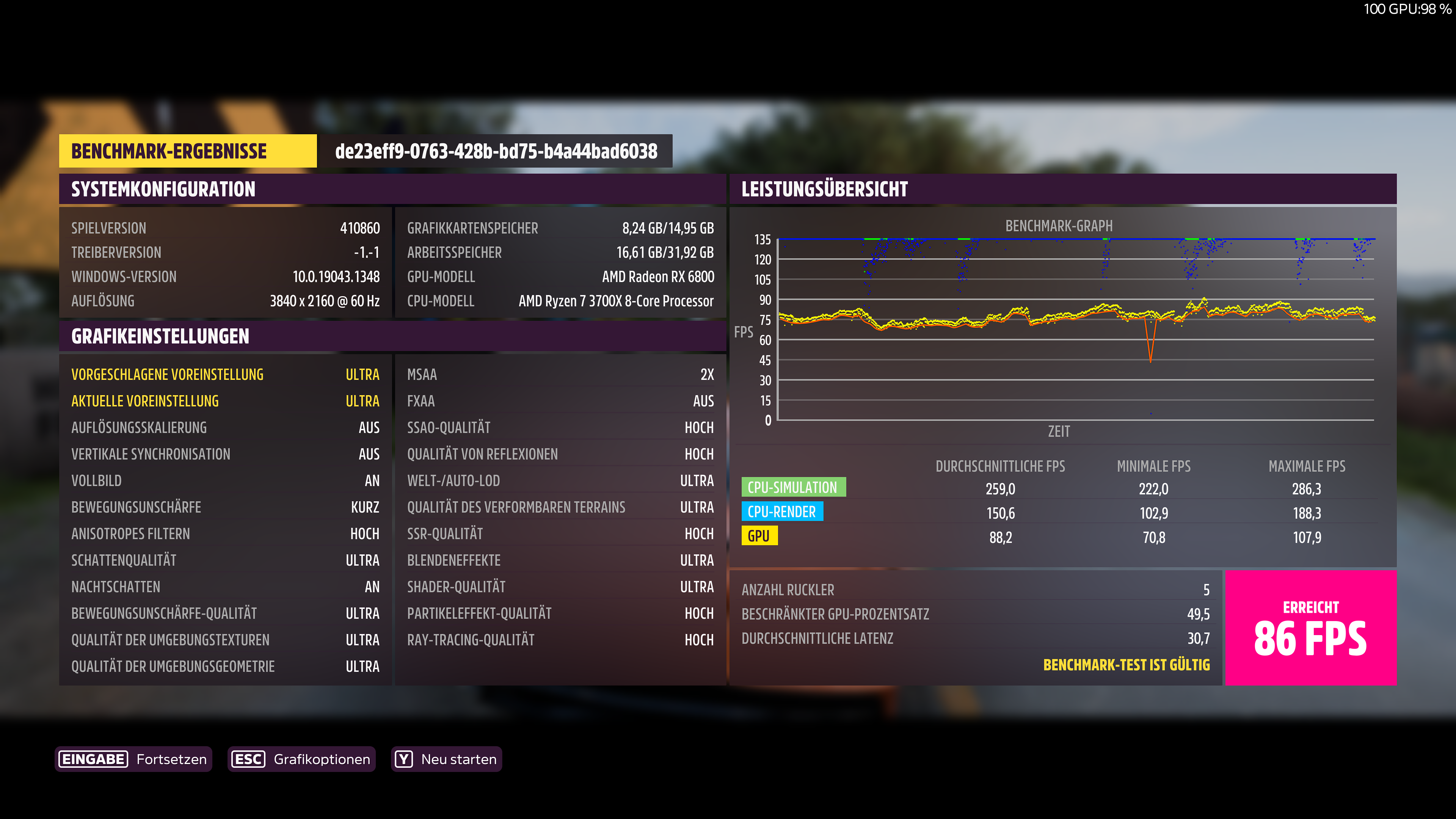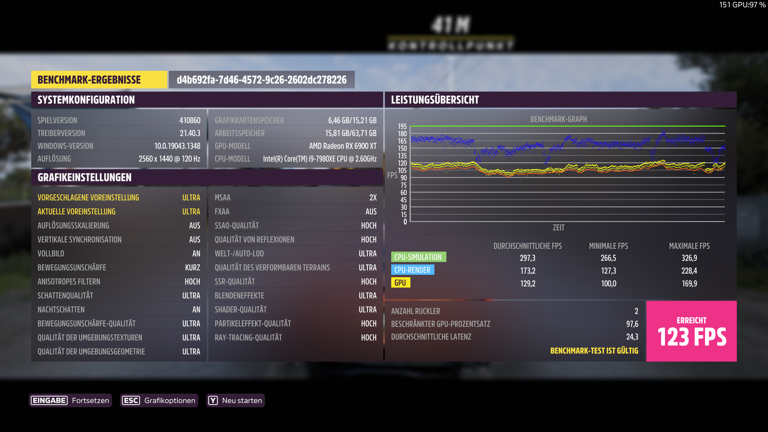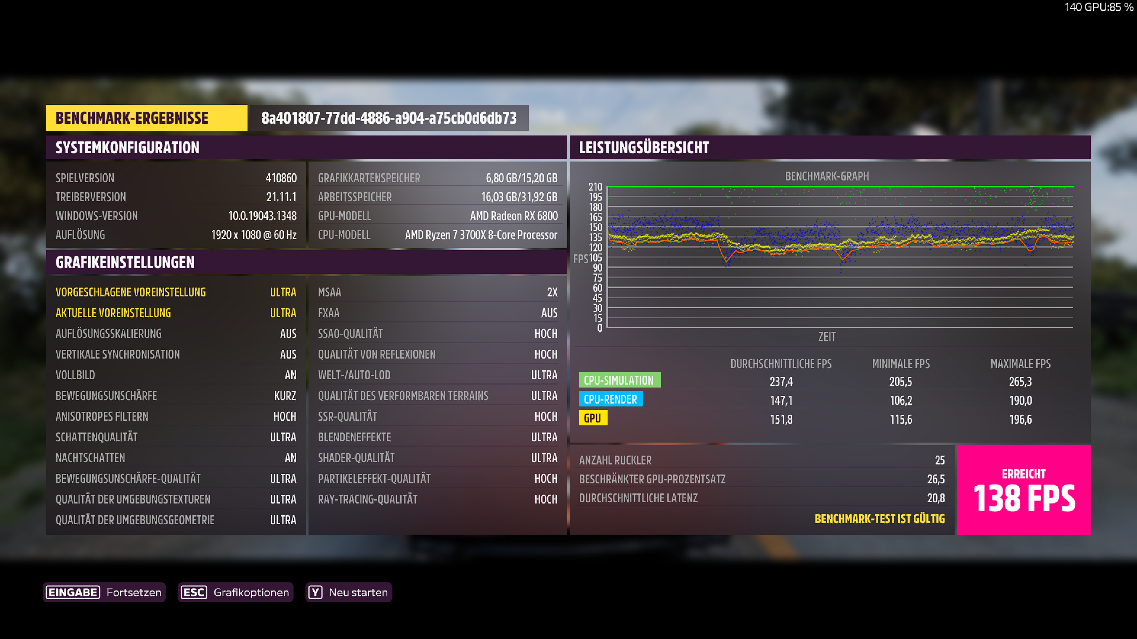1.280 x 720, Preset Ultra (für Nerds!): 141