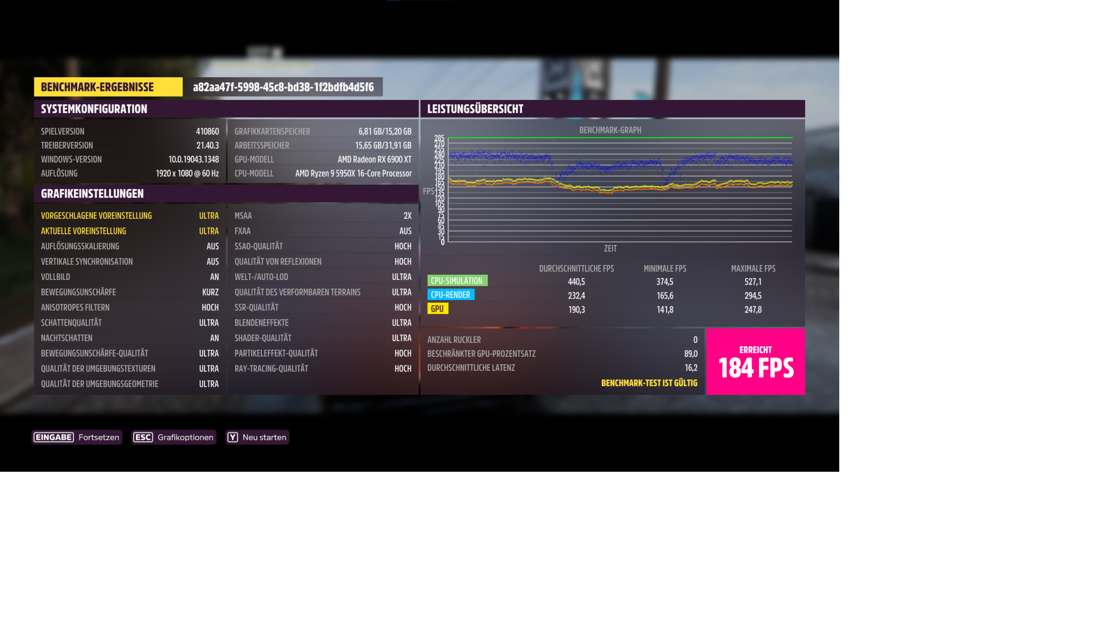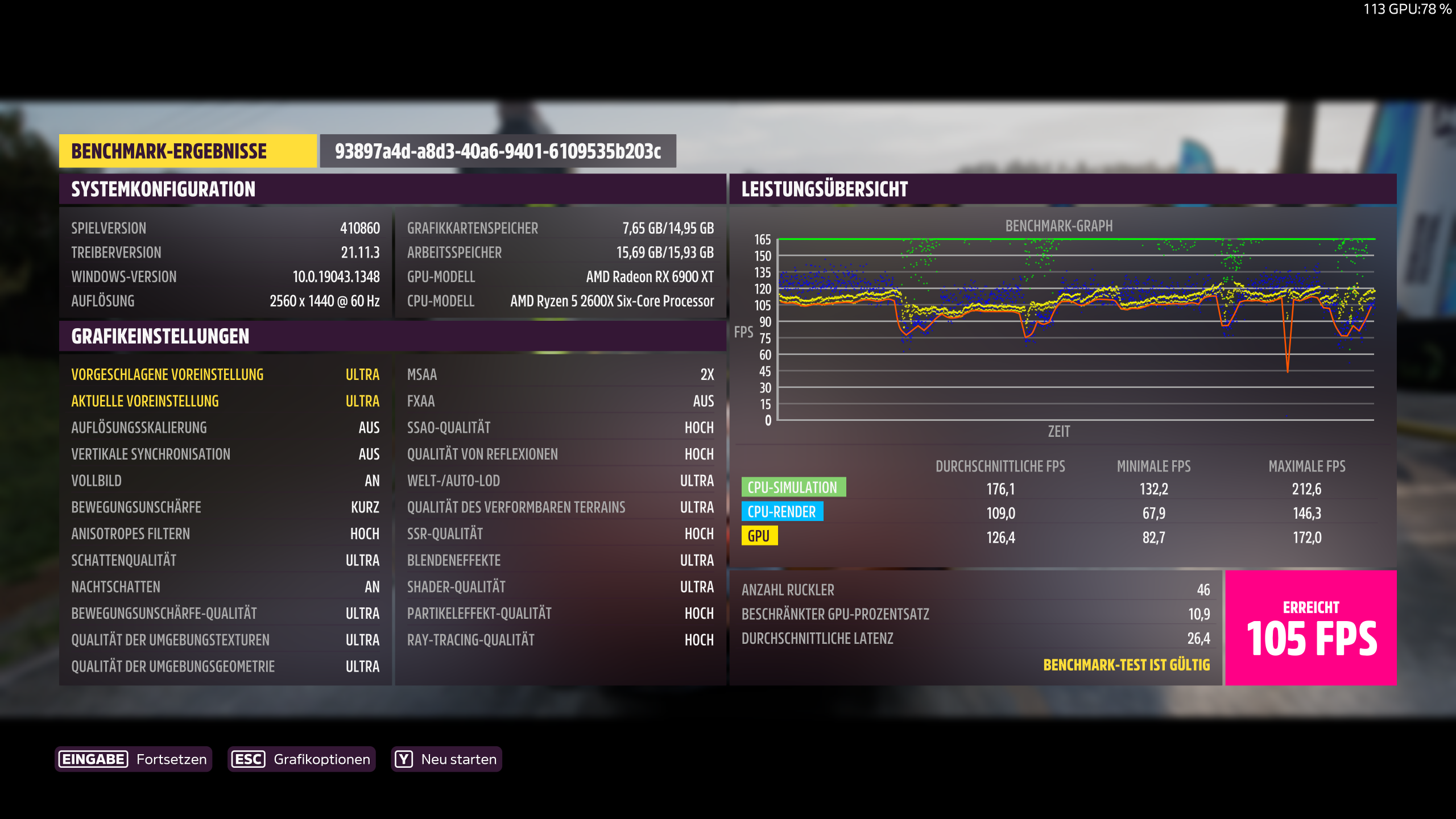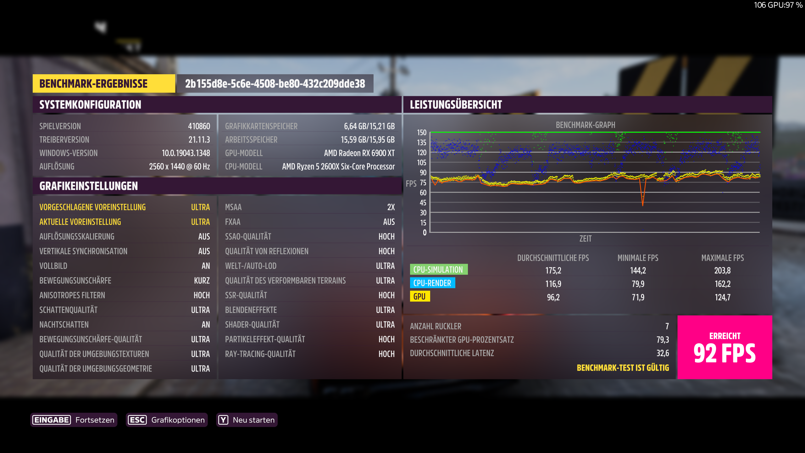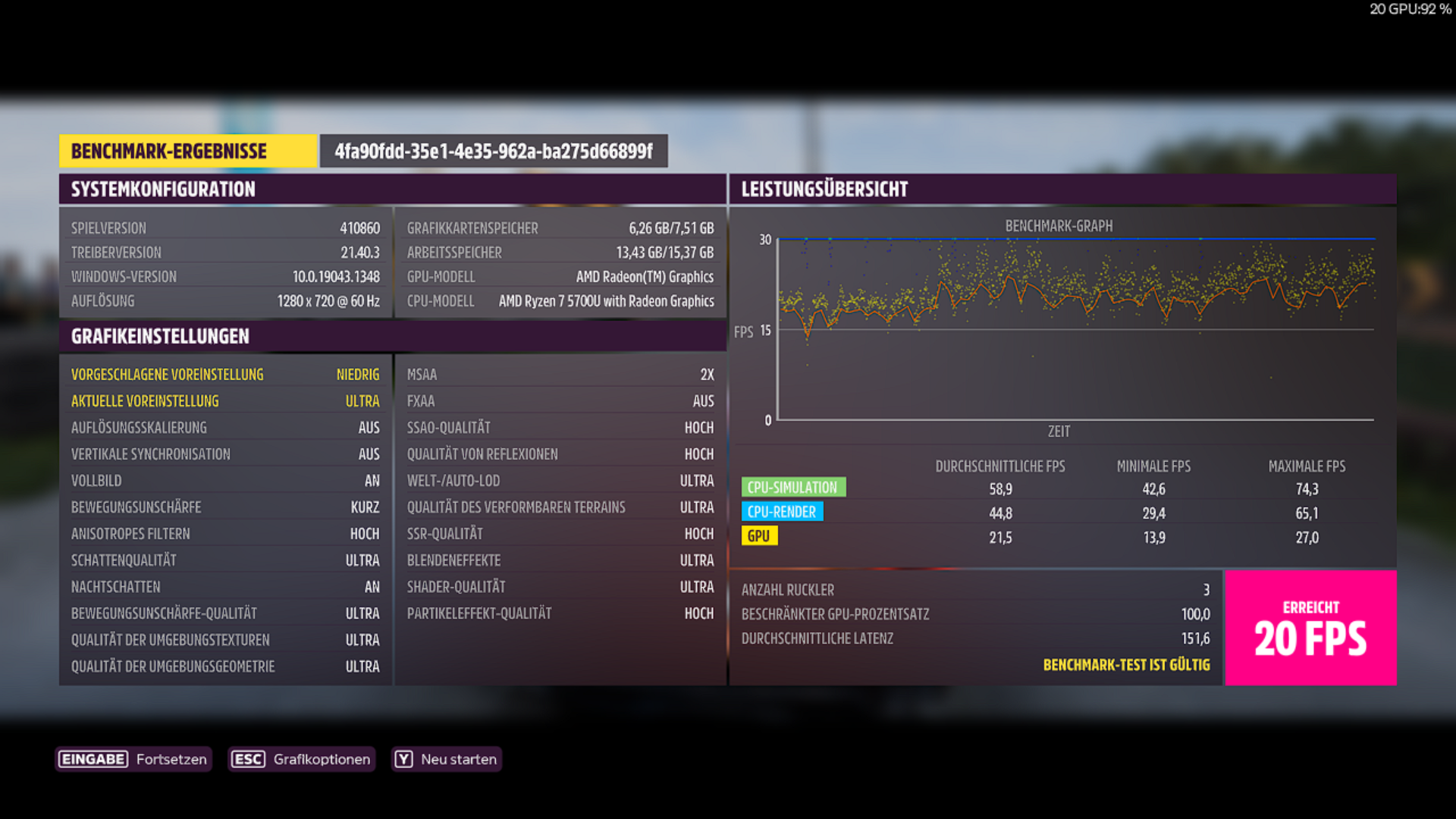 1.280 x 720, Preset Ultra (für Nerds!): 20