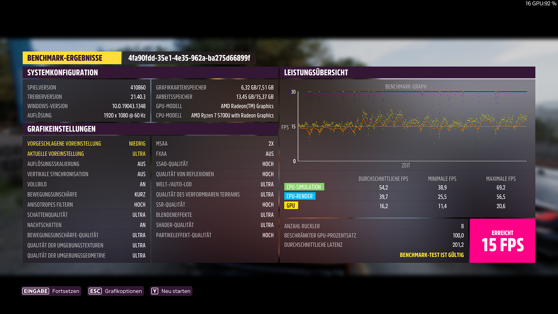 1.920 x 1.080, Preset Ultra: 15