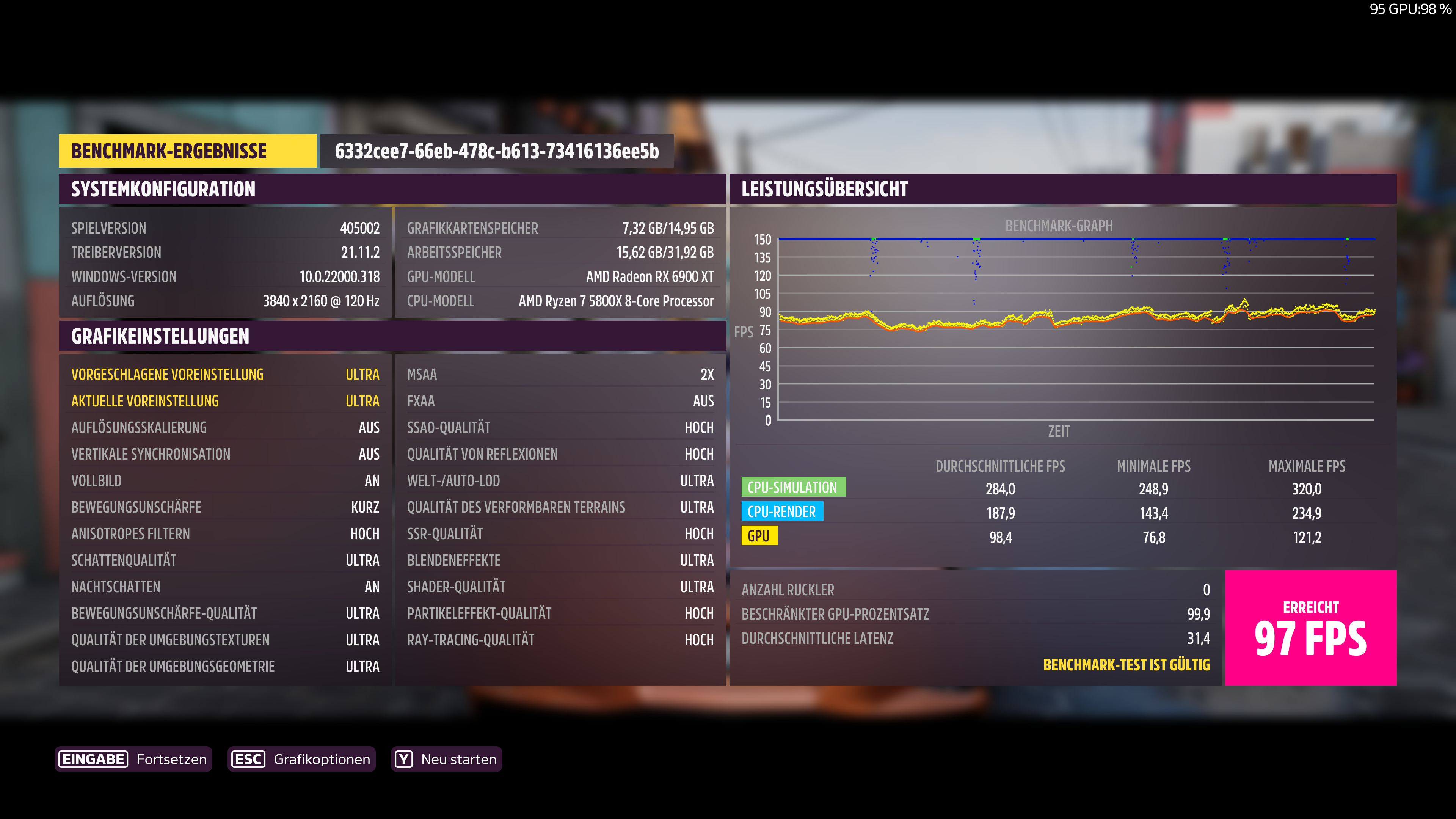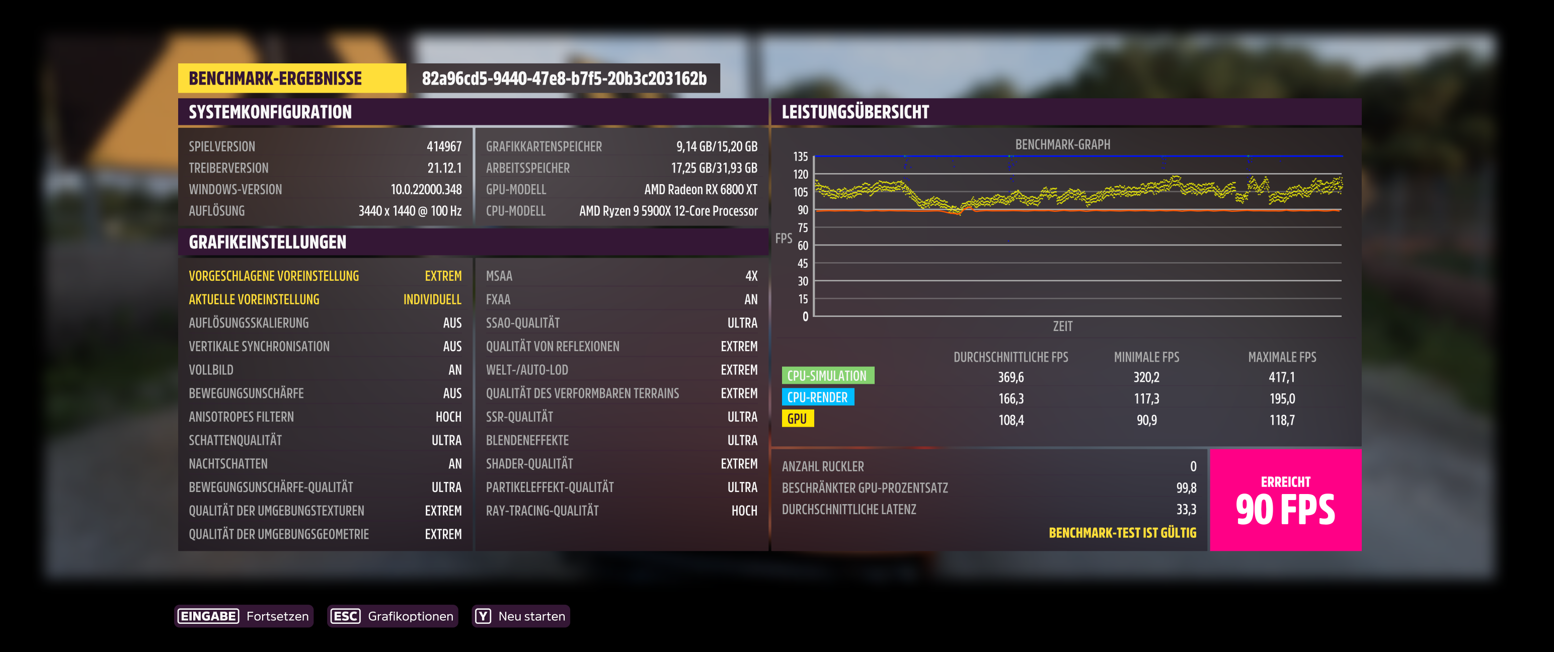 Die forza5-Besonderheit hier: musste die Ziel-max-fps im Treiber noch etwas mehr runtersetzen (90, bis forza5 waren hier auch 95 noch ok), um auch wirklich immer innerhalb der freesync-range zu bleiben und nicht hin und wieder über die 100hz "schwingen" (im OSD des Monitors kontrolliert).