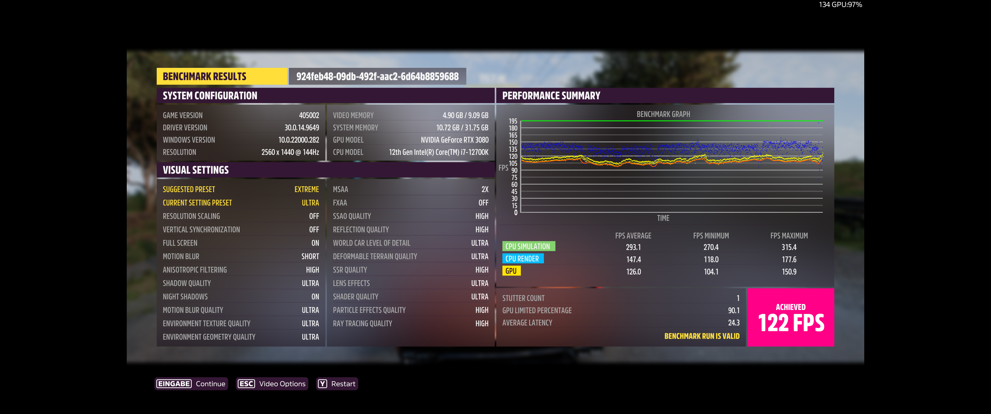 2.560 x 1.440, Preset Ultra: 122