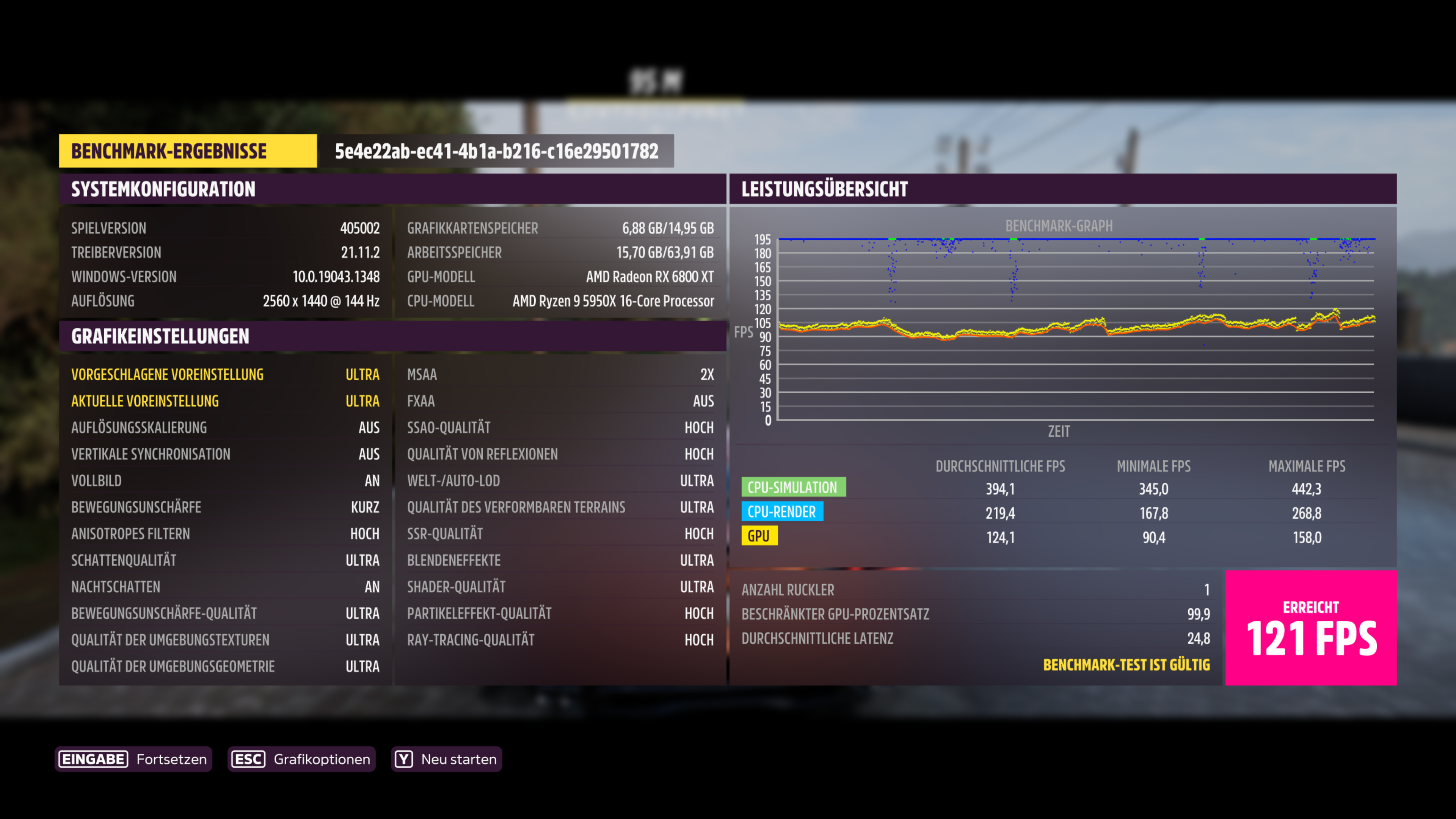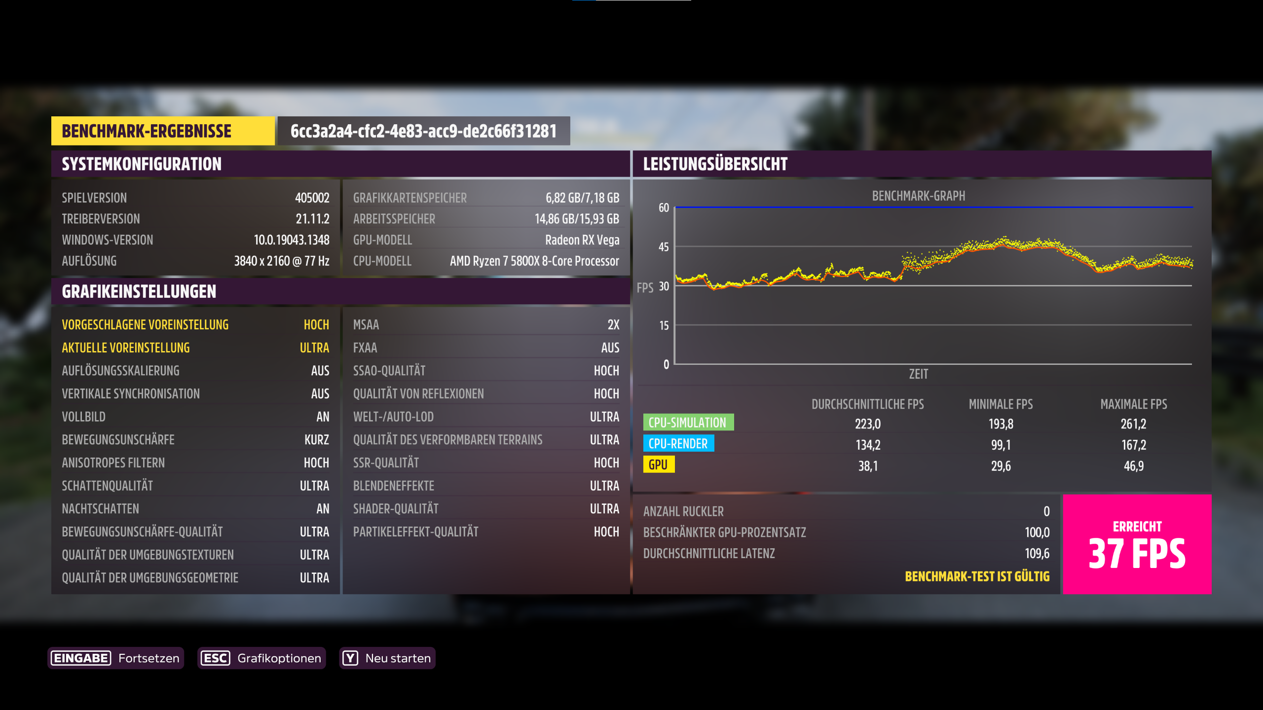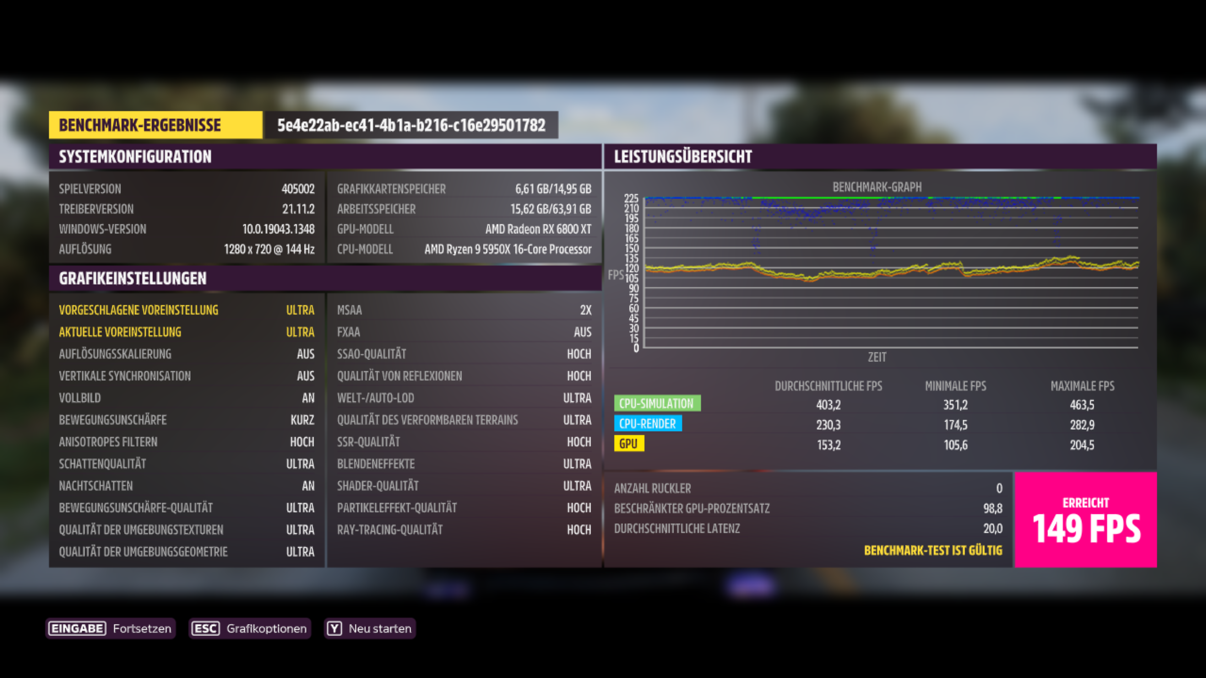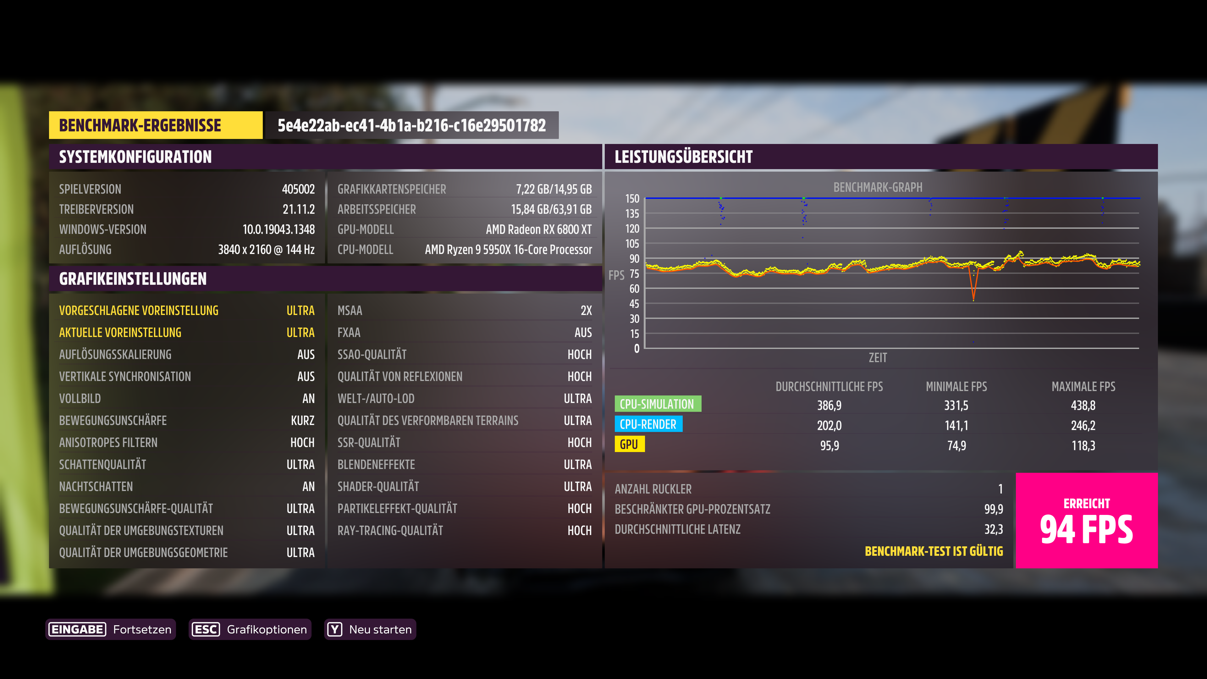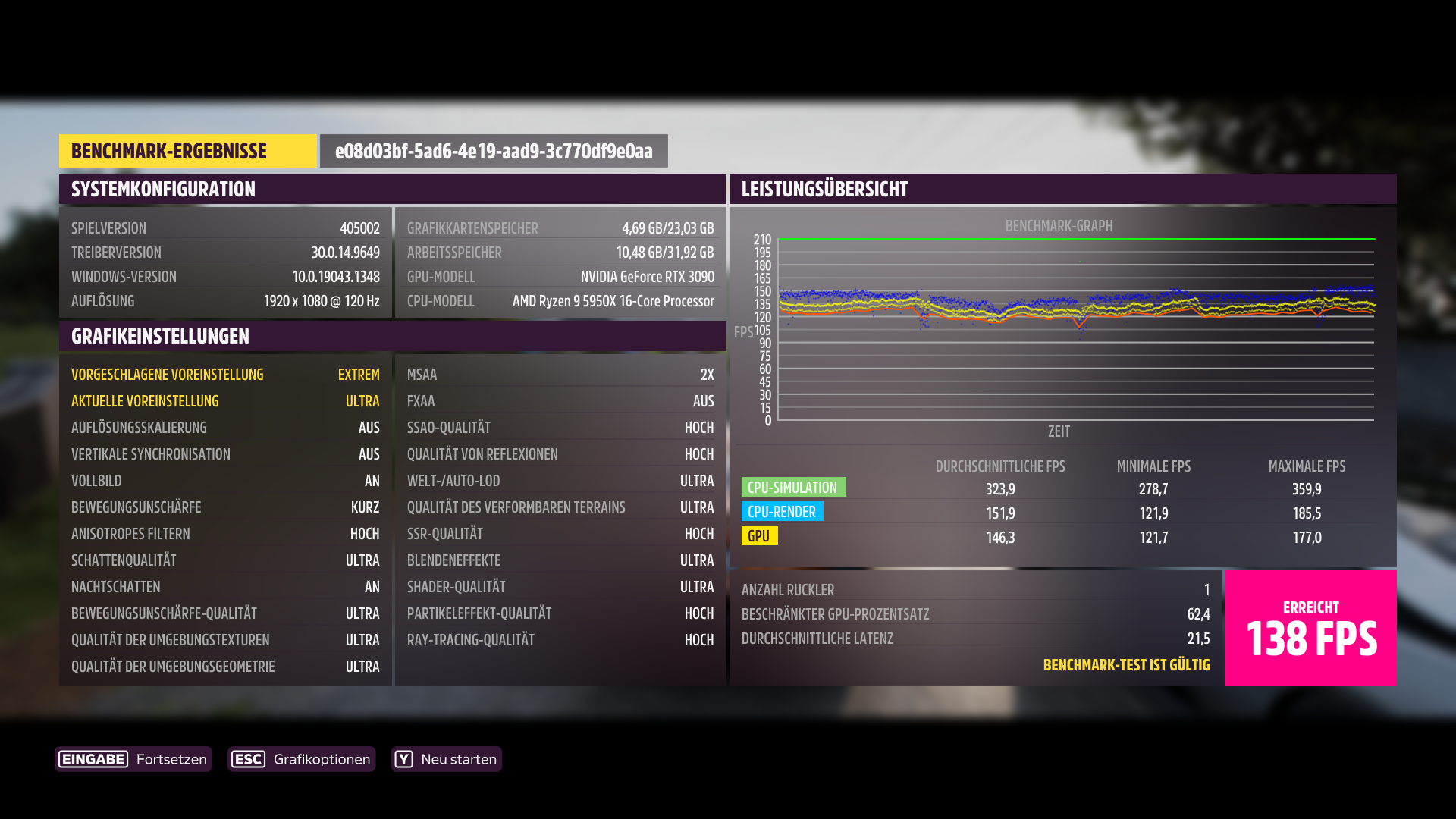 Deine Bewegungsunschärfe steht auf "aus", sollte wohl auf "kurz" stehen wie bei allen anderen Teilnehmern.PuscHELL76 schrieb:System: RTX3090 FE,5900X, 3800CL14