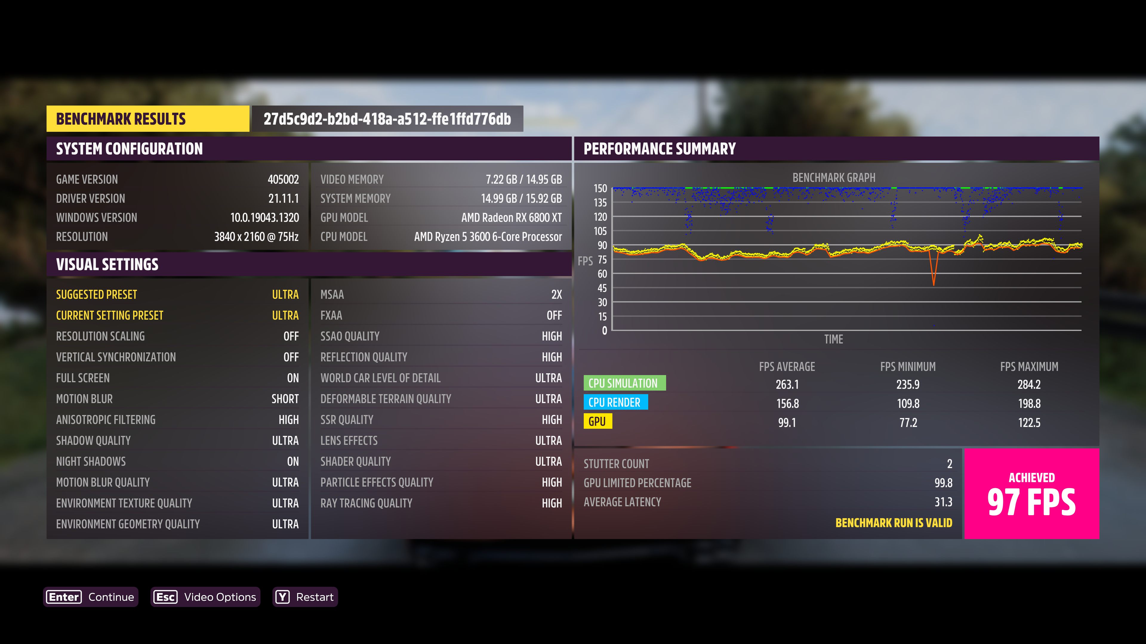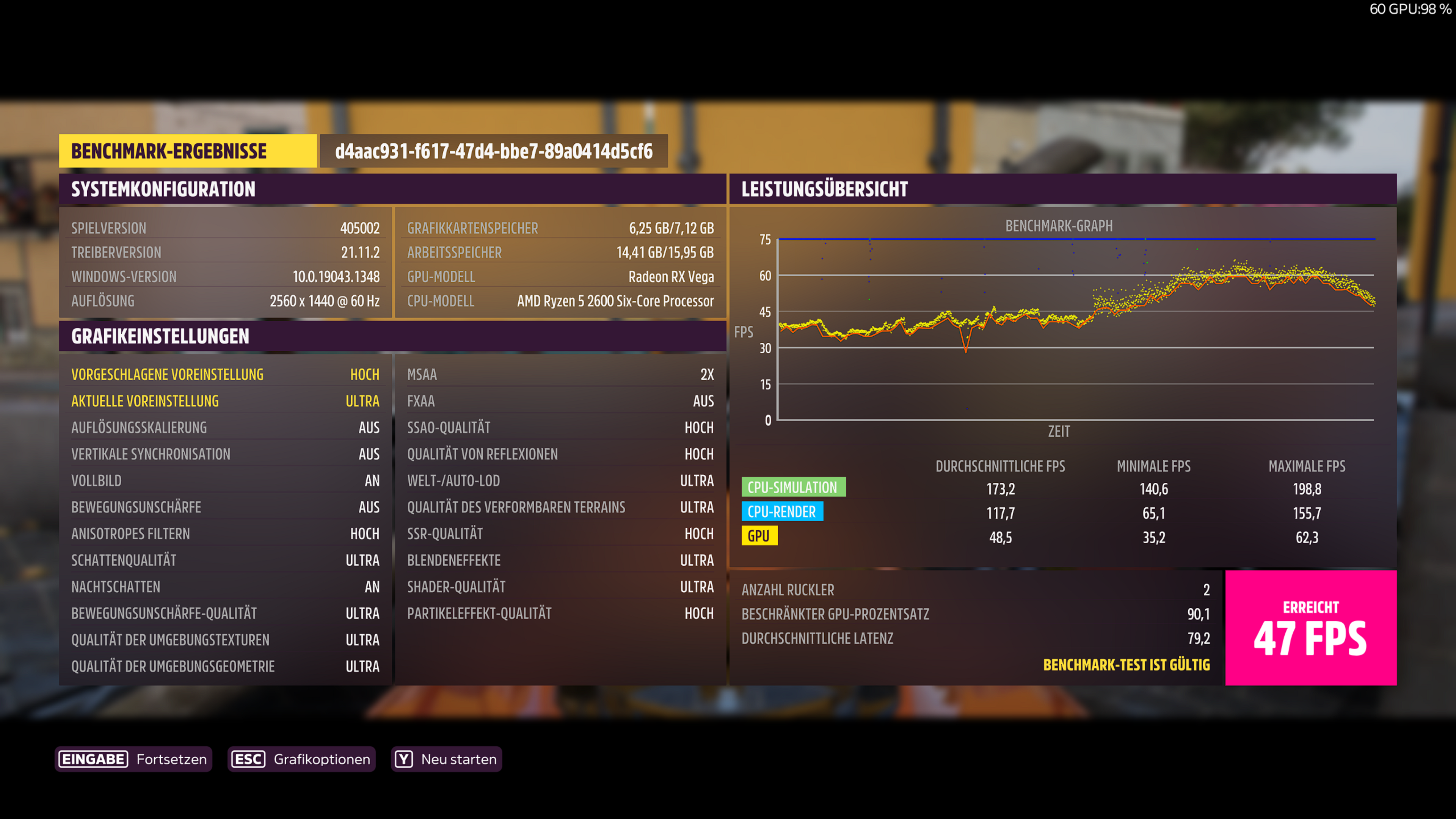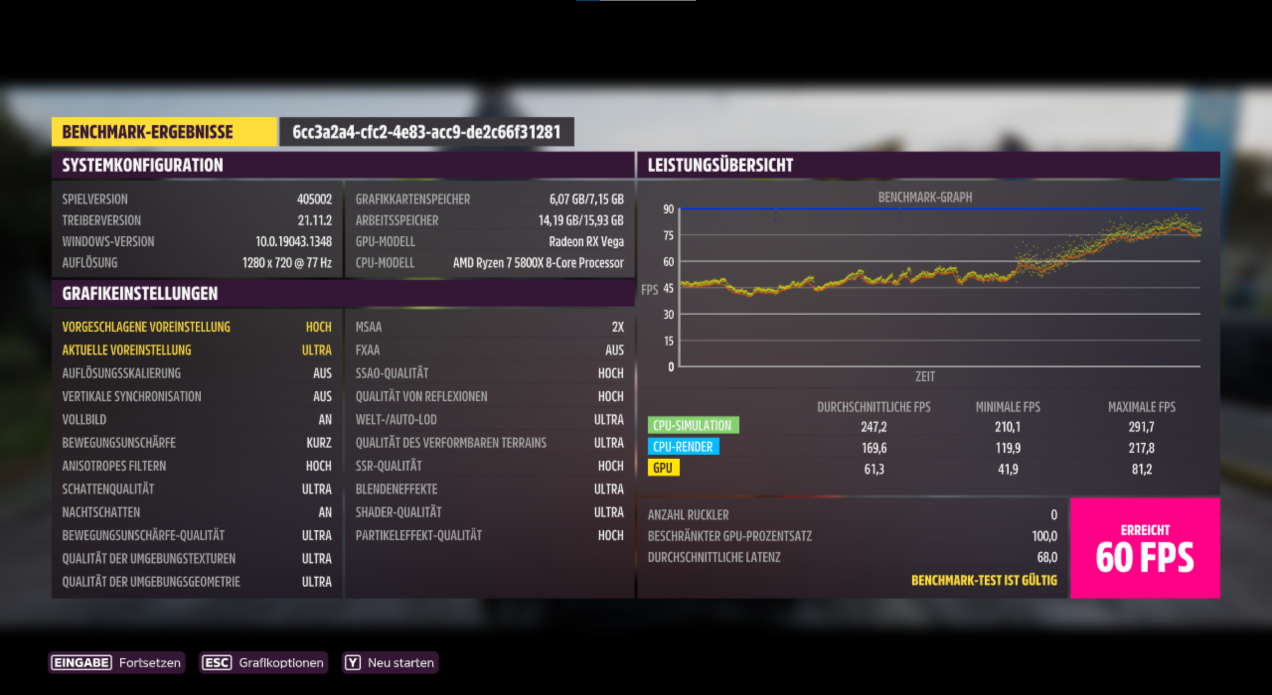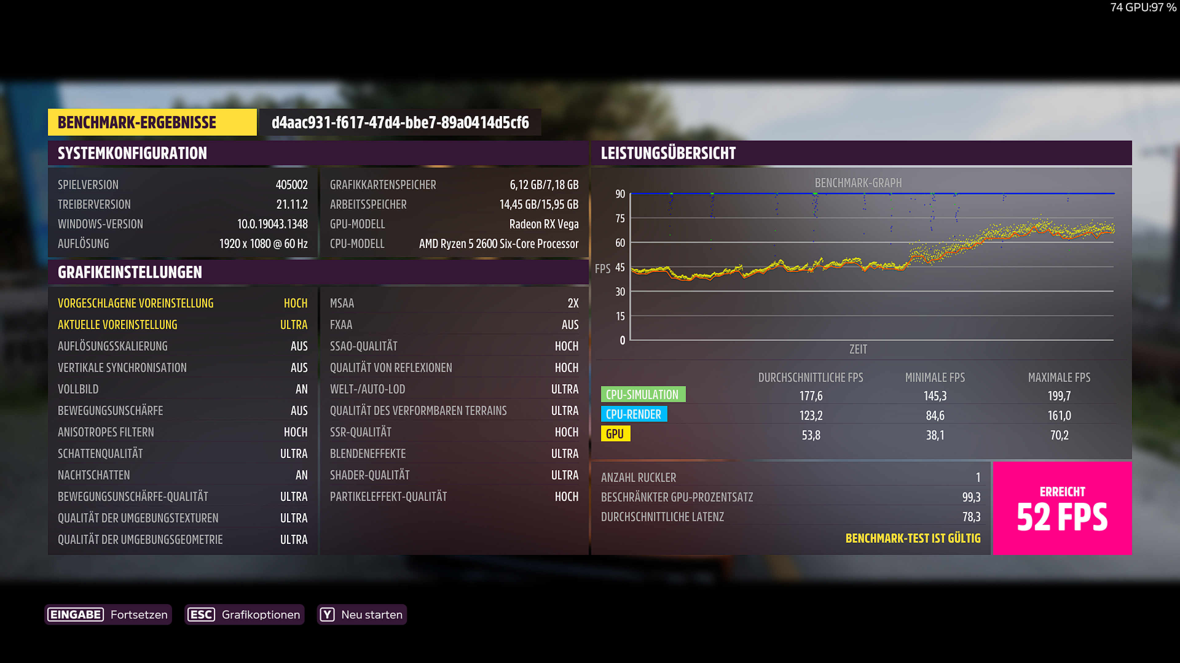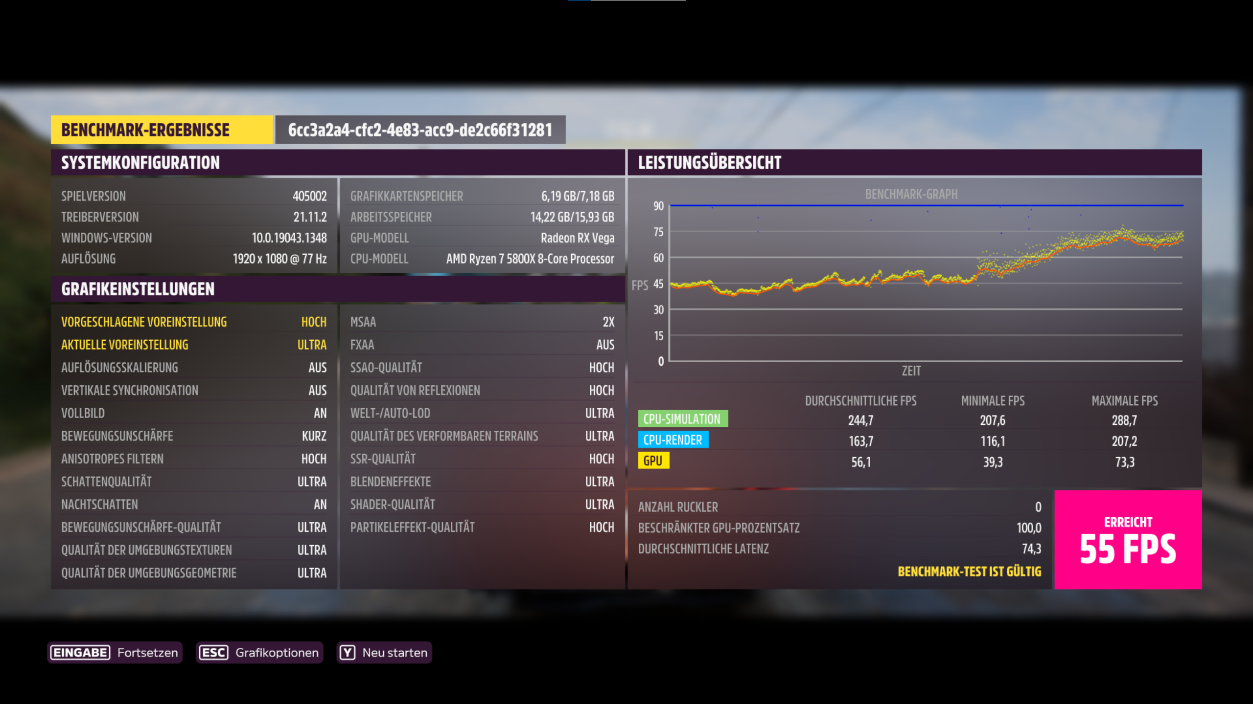 Deine Bewegungsunschärfe steht auf "aus", sollte wohl auf "kurz" stehen wie bei allen anderen Teilnehmern.PuscHELL76 schrieb:System: RTX3090 FE,5900X, 3800CL14