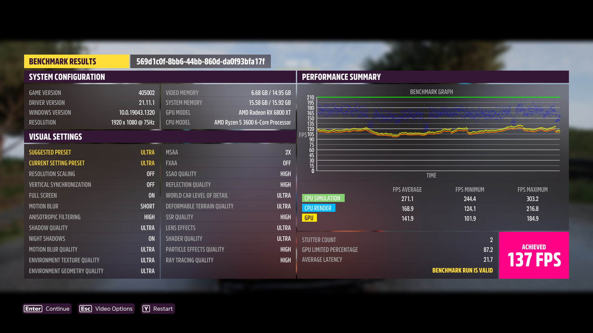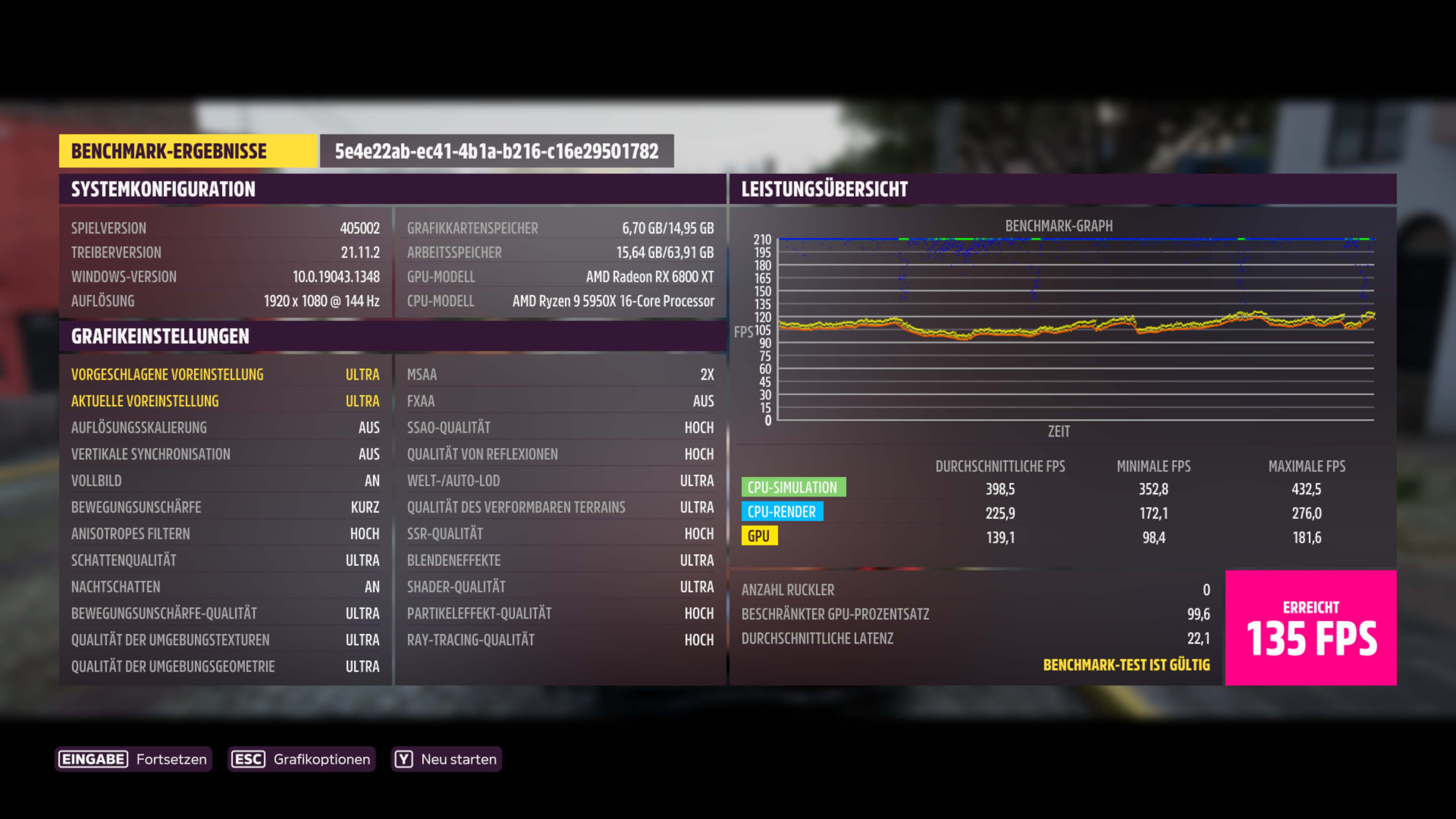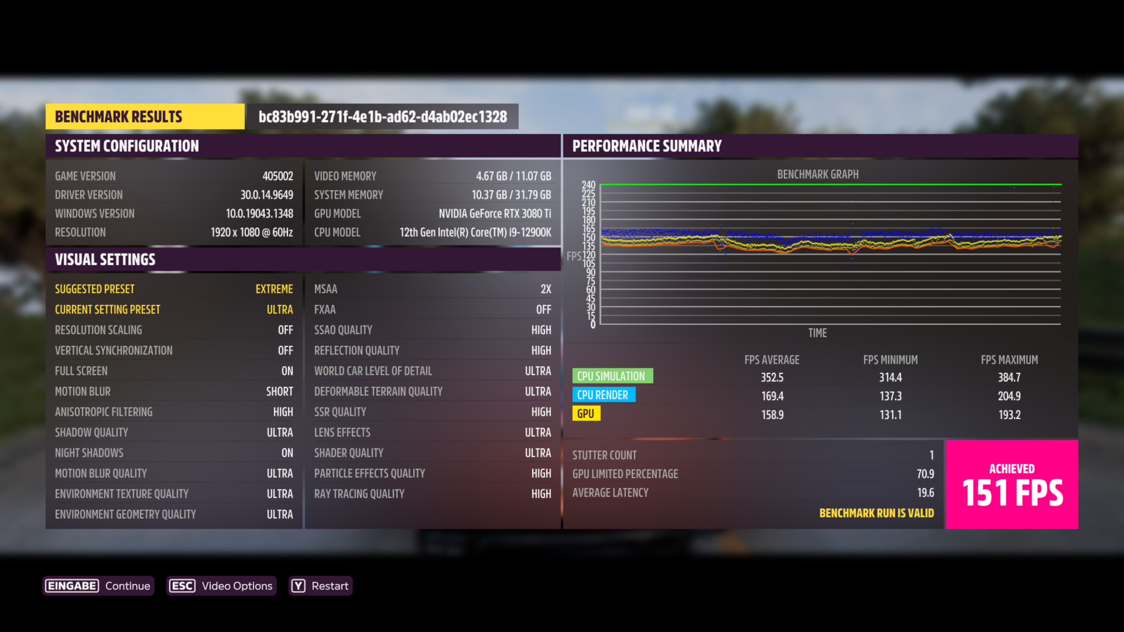 1.920 x 1.080, Preset Ultra: 139
