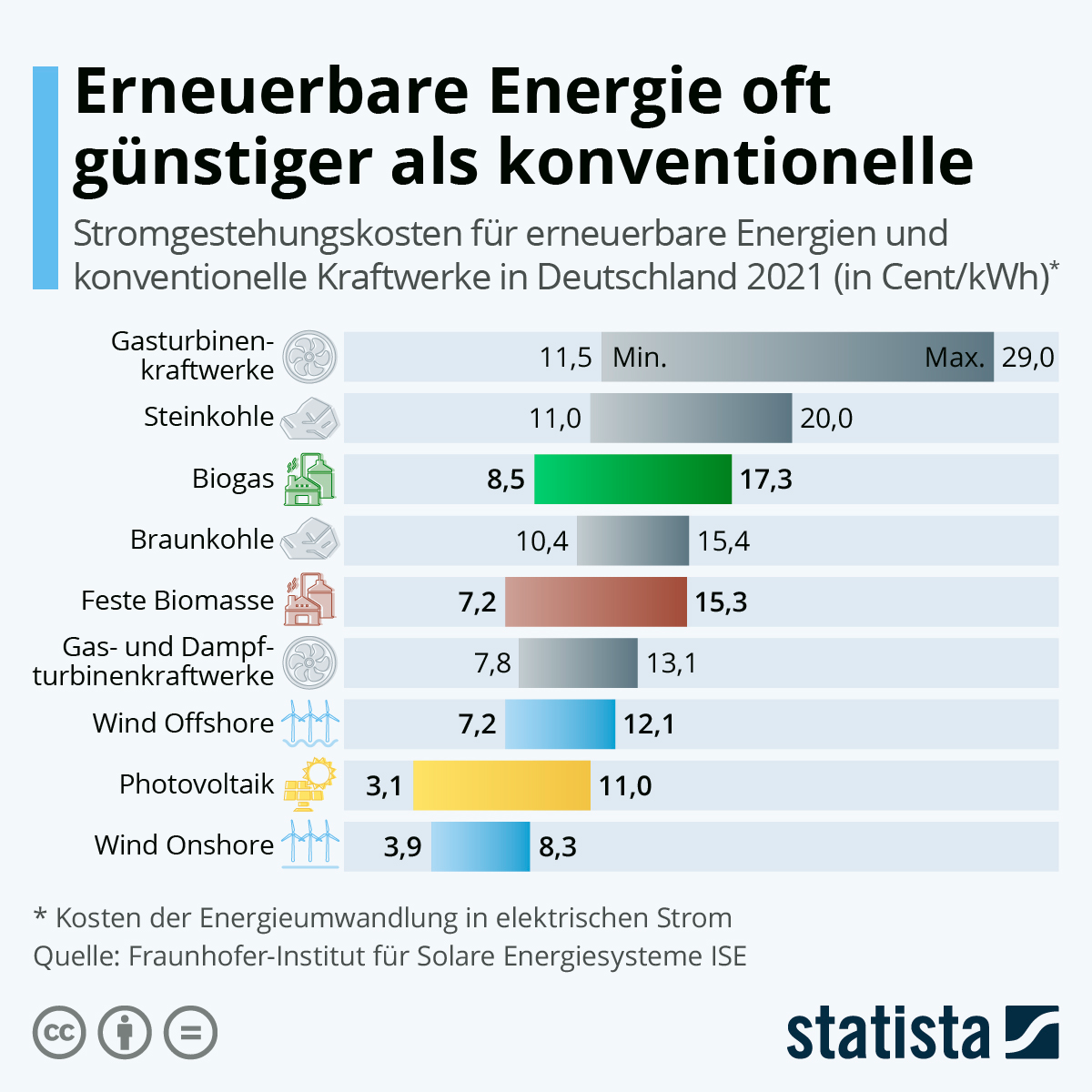 findet man auch ohne ki...Trelor schrieb:Stromgestehungskosten von ~2 Cent die KWh sind kaum zu schlagen. Zum Vergleich kommen Gaskraftwerke auf um die 6 Cent die KWh, AKWs auf je nach Bauweise 6-10 Cent und EE mit entsprechenden Speichern je nach Konzept auf 8-9.